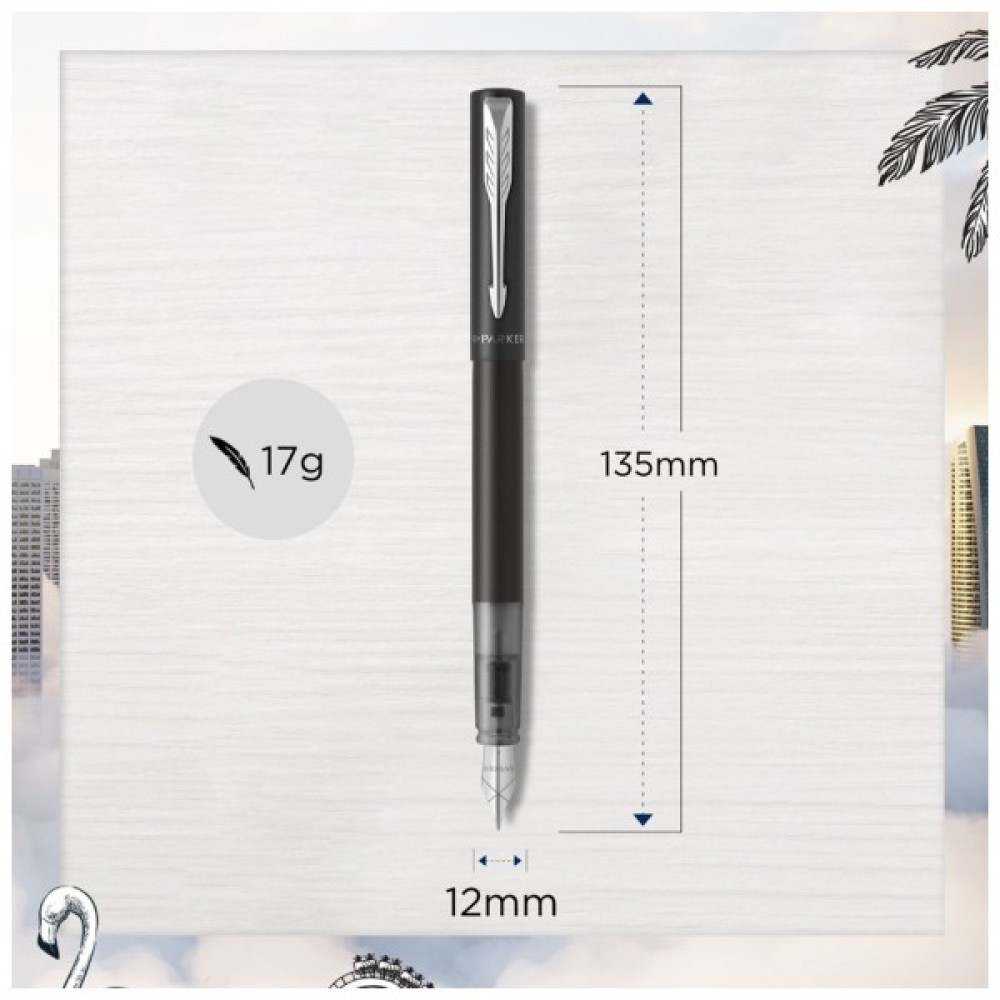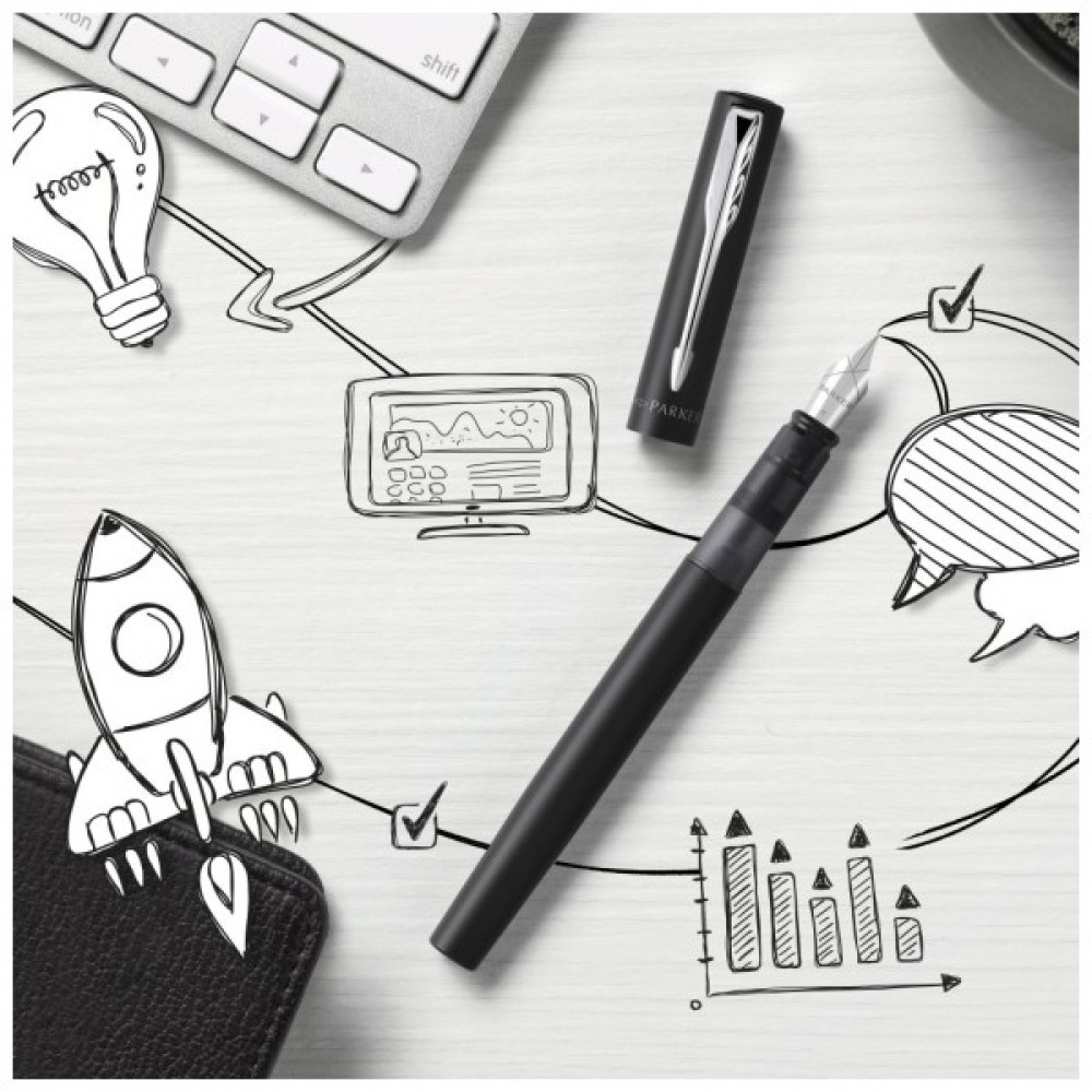 Перова ручка Parker VECTOR XL Metallic Black CT FP М зі сталевим пером середнього розміру. Vector XL – це найкраща ручка для сучасного способу життя. Студенти, молоді фахівці та творчі люди будуть у захваті, адже ця ручка створена для них.