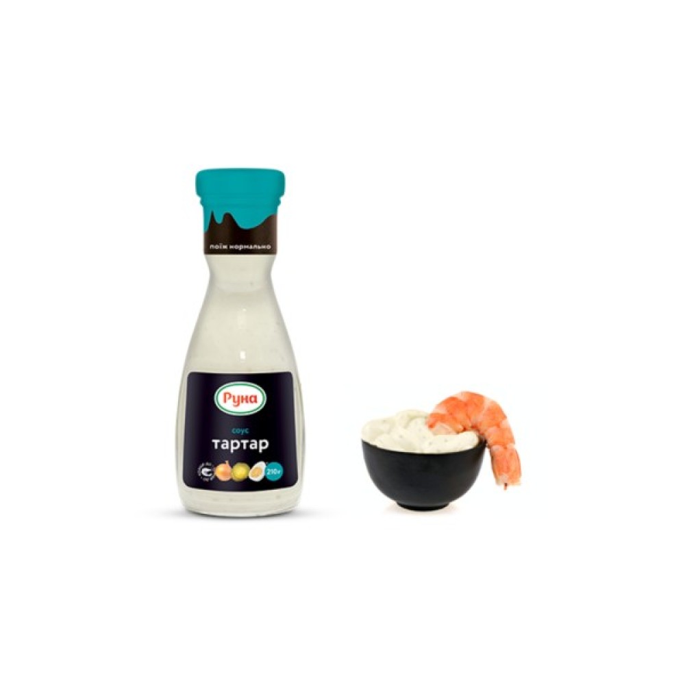Один із найпопулярніших майонезних соусів у світі – Тартар з’явився у Франції у 19 столітті. Французи робили його на основі майонезу та маринованих огірків. У фірмовій рецептурі соусу Тартар Руна — ферментовані огірки, гірчиця, сушені овочі: цибуля, часник, прянощі (кріп, базилік, перець чорний). Соус з легкою майонезною основою – 30% жирності, має ніжну текстуру та пікантний смак з кислинкою.