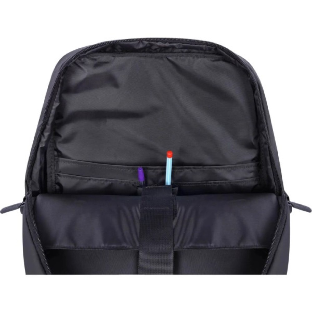 Рюкзак має містке основне відділення з окремим відсіком для ноутбука діагоналлю до 15 дюймів. Крім того, на передній частині є дві кишені-органайзери на блискавці, а на спинці — кишеня для цінних речей «Антикрадій».