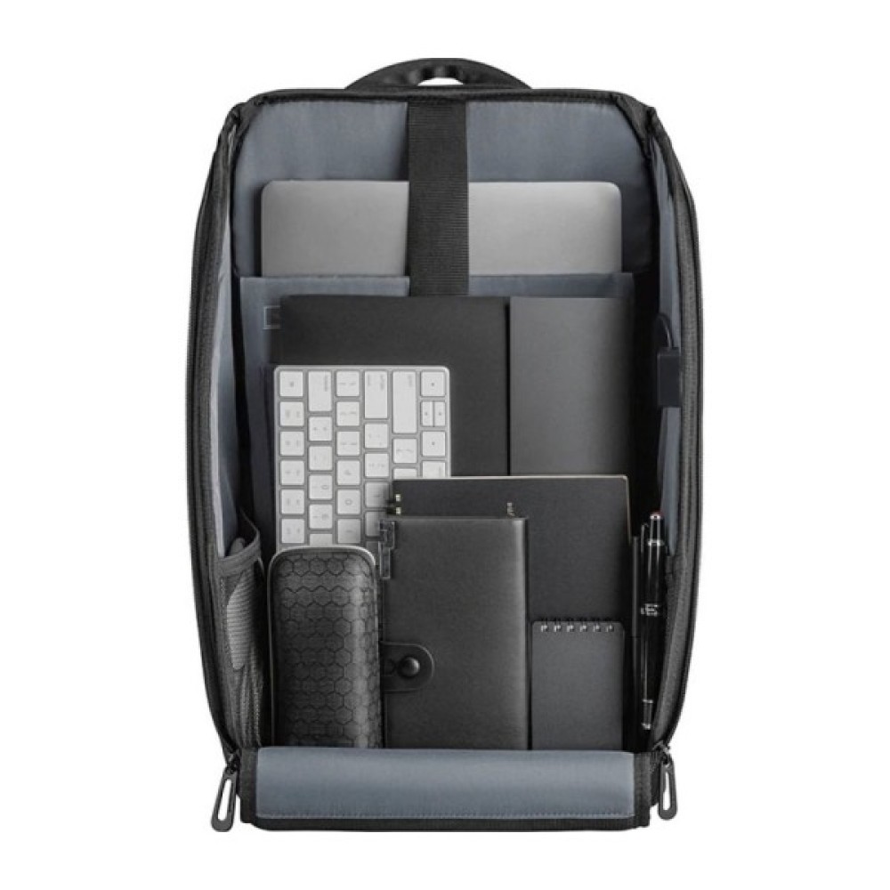 Основне відділення повністю відкривається завдяки зручній блискавці, що спрощує пакування та організацію простору. Всередині можна розмістити ноутбук до 15.6" та планшет до 11".