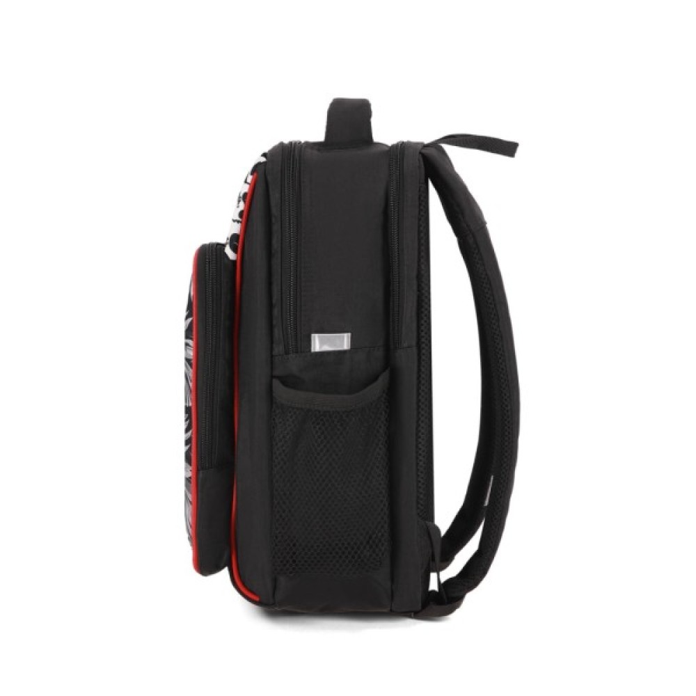 У рюкзаку — два просторі відділення на блискавці, де легко помістяться підручники, зошити або улюблені іграшки. Є також менше за розміром відділення з органайзером для канцтоварів — з ним можна обійтися без пенала. Спереду розташована зручна кишеня на блискавці для дрібниць — наприклад, телефону чи ключів. По боках — сітчасті кишені для пляшки з водою або термоса.