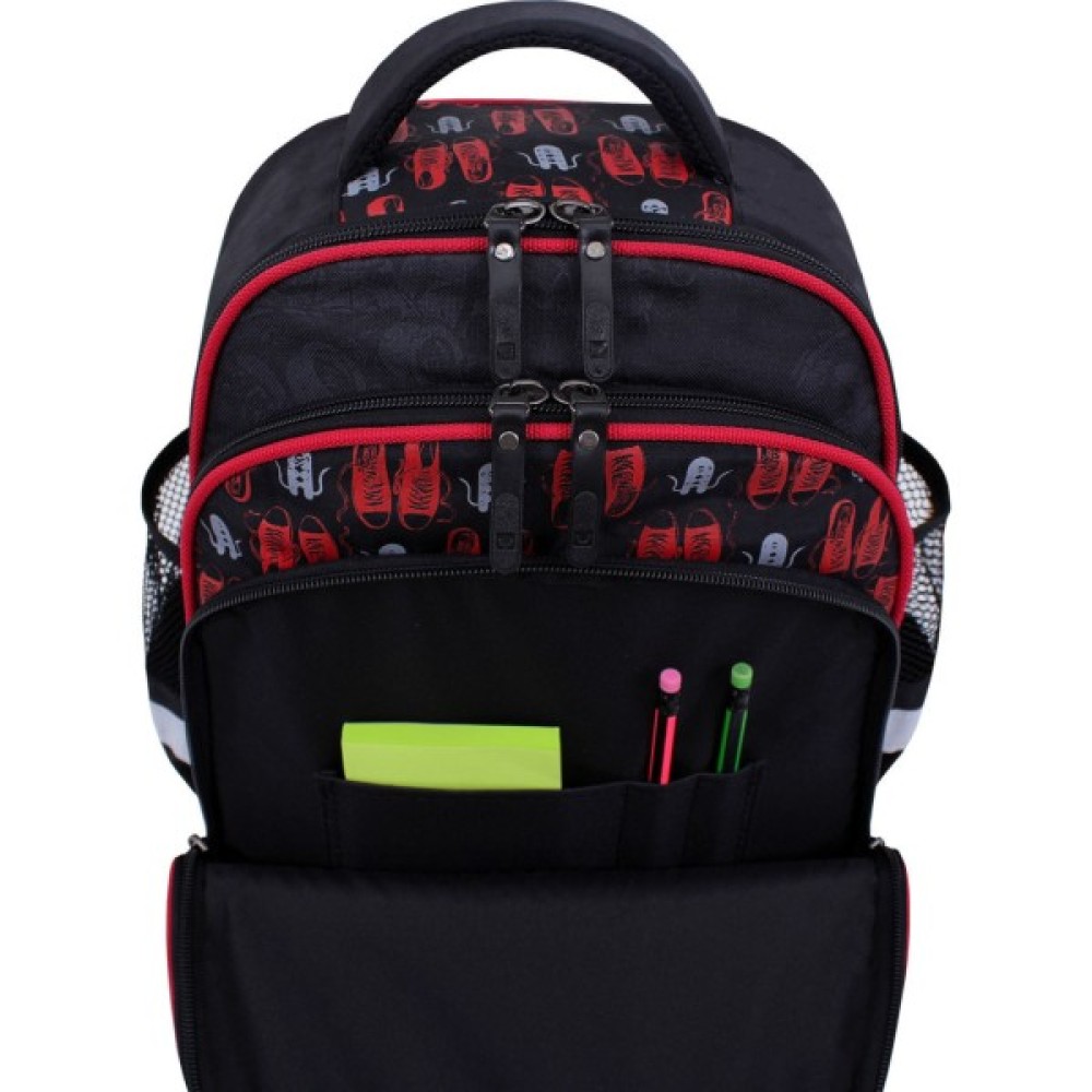 Місткість та організаціяРюкзак має три відсіки. Основне і найбільше відділення підійде для підручників та спортивної форми. Друга кишеня призначена для зошитів, блокнотів чи альбому для малювання, а відсік-органайзер спереду — для дрібних канцтоварів. Ззовні збоку є кишені-сітки для пляшок із водою.