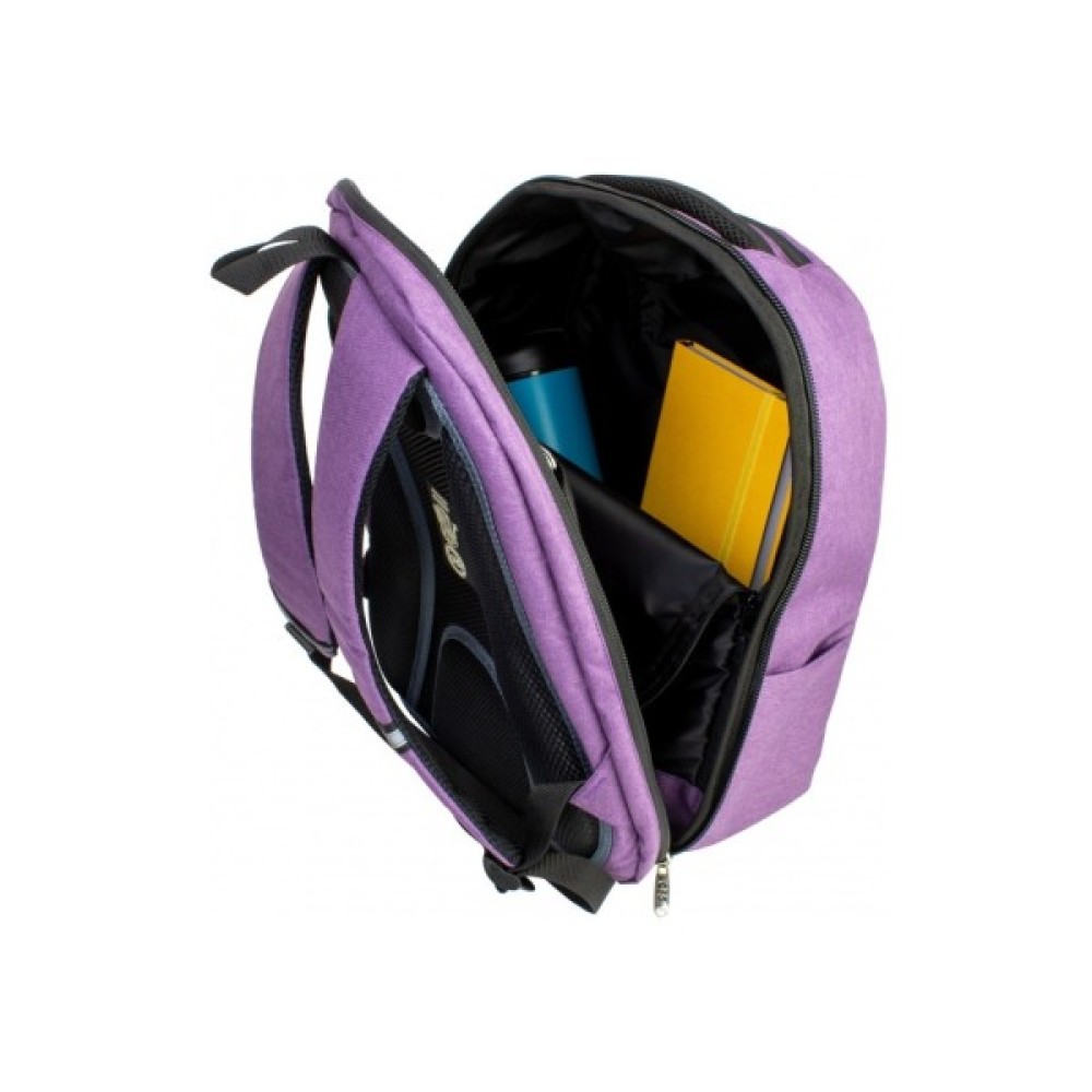 Рюкзак 17.5". Матеріал: поліестер; Laptop-кишеня на двох кутових гумках для надійної фіксації ноутбука; жорстка S-подібна ортопедична спинка зі склопластиковим стрижнем; ергономічні S-подібні лямки, 2 основних відділення (одне з функціональним органайзером, друге — з внутрішнім роздільником на два окремих відділення) знімний брелок для ключів; бічні кишені (одна на блискавці для дрібниць, інша — для пляшки) додаткова кишеня для окулярів або дрібниць; металева фурнітура; міцна ручка; світловідбивні елементи на фасаді та на лямках.