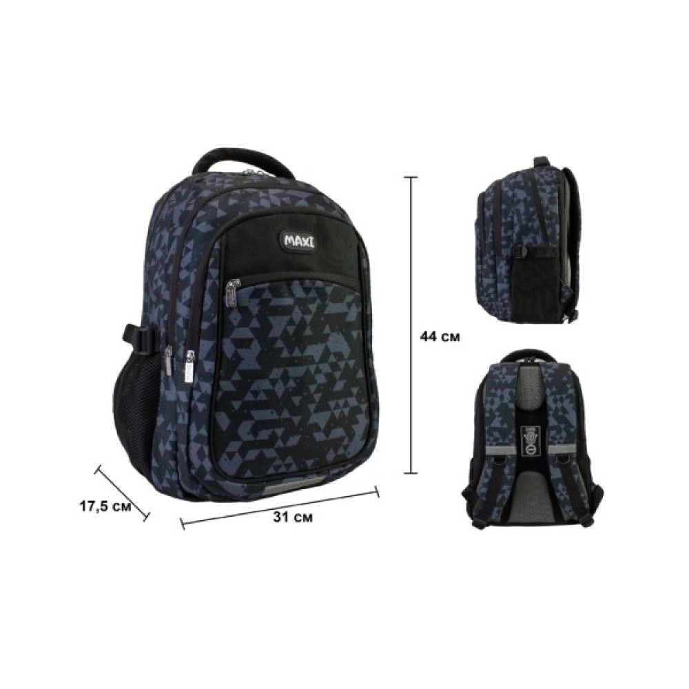Рюкзак містить: 4 основні відділення; 2 бічні кишені для пляшечки та парасольки; жорстка ортопедична спинка; ергономічні S-подібні лямки; ключниця; надійна фурнітура; світловідбивні елементи; міцна ручка-петля; органайзер.