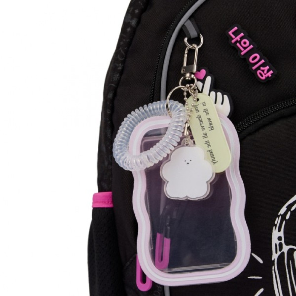 Модний чорний колір рюкзака з яскравими акцентами створюють стильний образ. Брелок-холдер для ID картки або перепустки у подарунок.