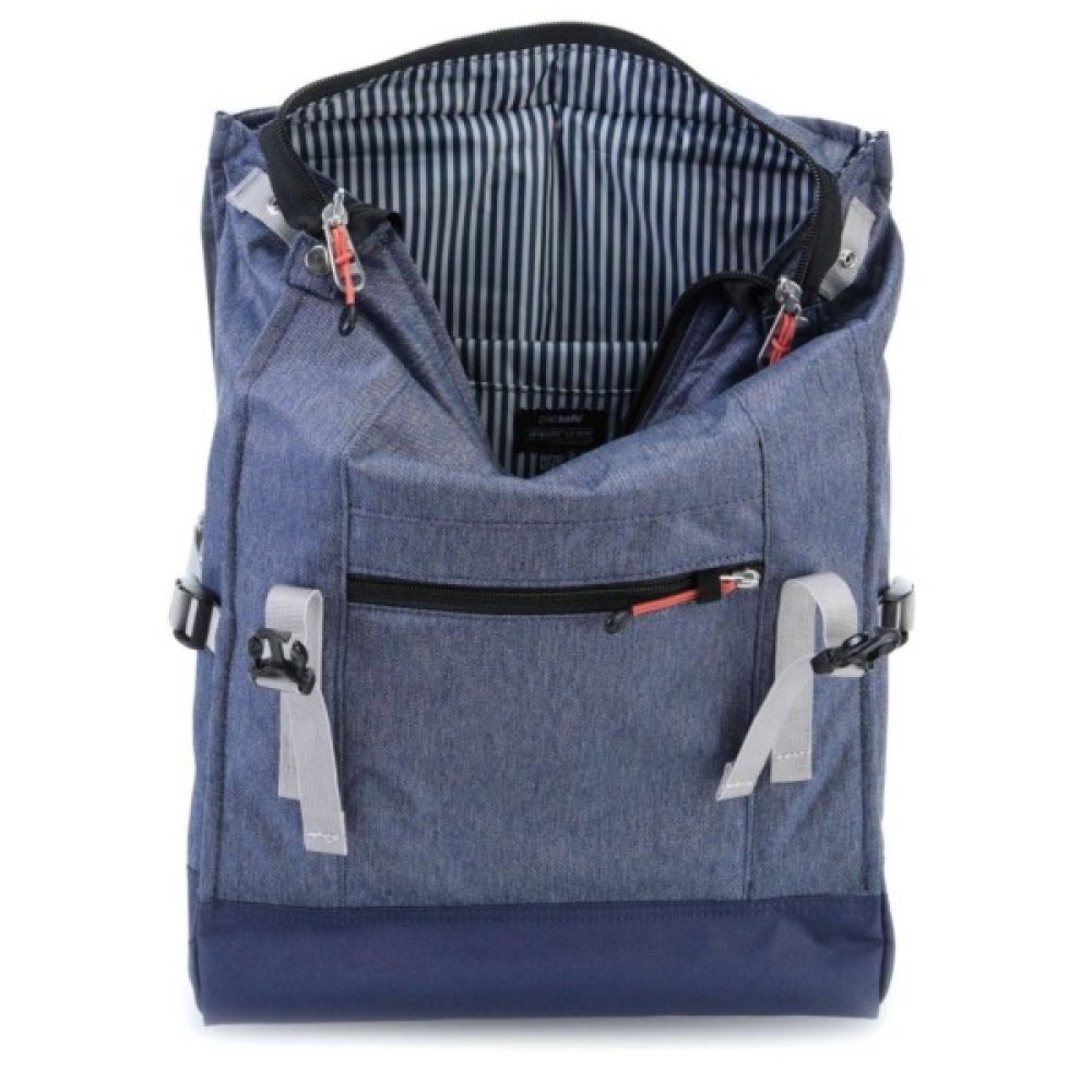 Рюкзак синього кольору Pacsafe Slingsafe LX450 – це сучасна стильна модель, яка має 5 ступенів захисту від крадіжок. Наплічник з чіткими прямокутними формами призначений для носіння в місті та для подорожей.
