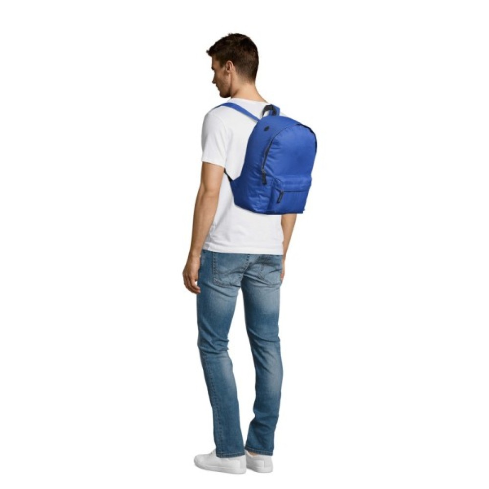 Стильний міський рюкзак SOL'S Rider. Має велике центральне відділення з застібкою-блискавкою з подвійним замком та передню кишеню на блискавці. Додатково збоку є отвір для гарнітури. Посилені регульовані лямки та спинка з м'яким набиванням; зручна ручка для транспортування.