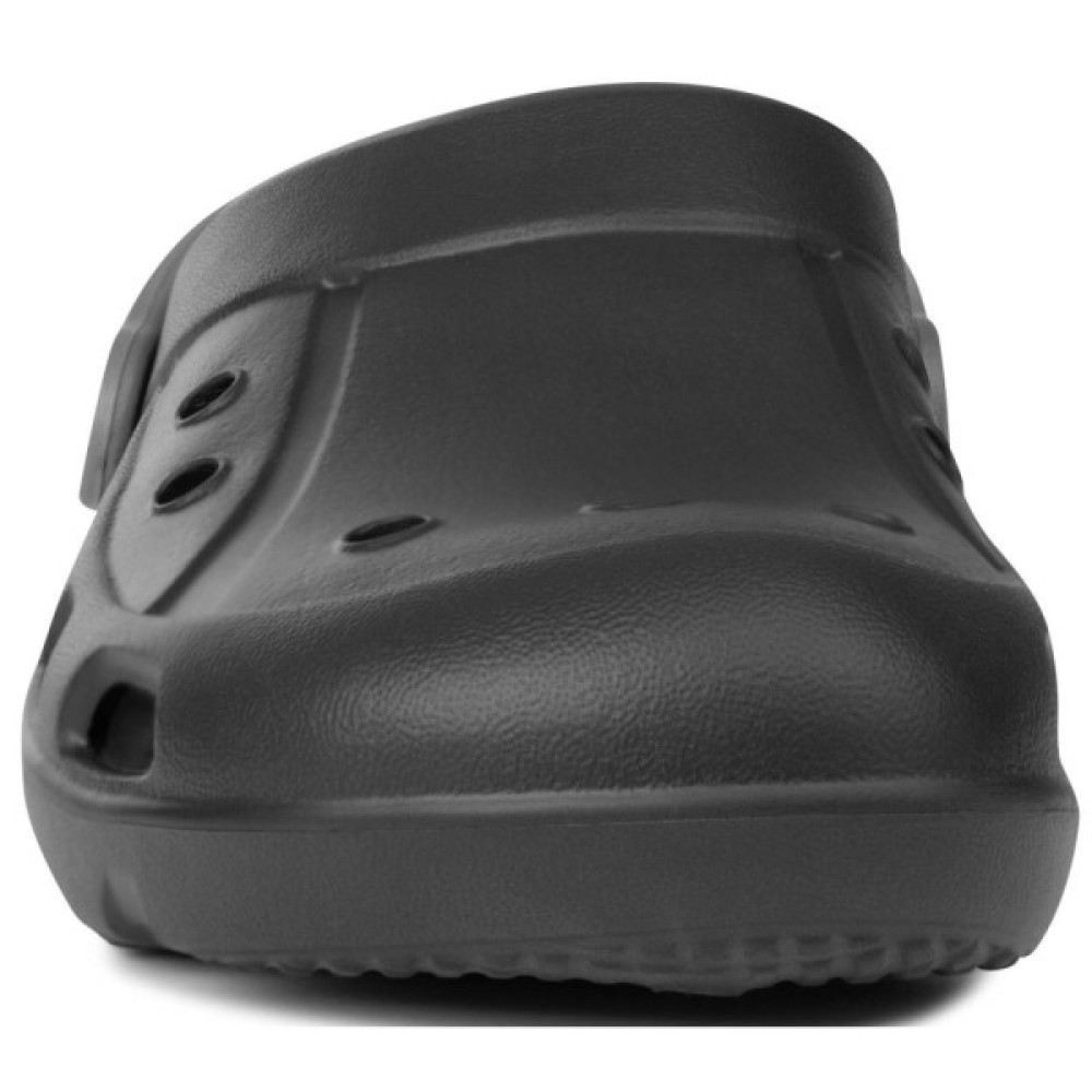 Має зручну внутрішню поверхню, що облягає стопу, і нековзку підошву, а п’ятковий ремінь не дає нозі вислизати з взуття.