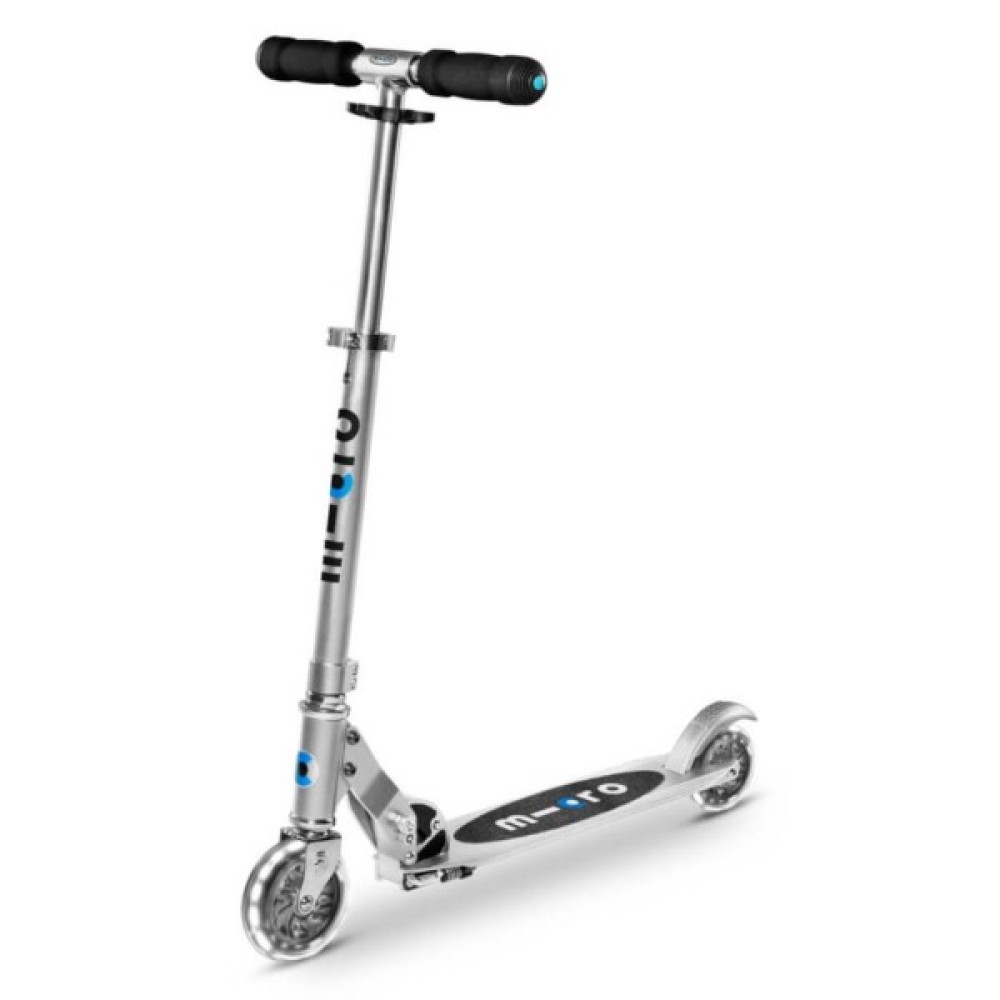 Самокат виготовлений з міцного алюмінієвого сплаву, завдяки чому вага самоката складає всього 2,85 кг. Максимальне дозволене навантаження на самокат складає 100 кг. Колеса самоката виготовляються з високоякісного поліуретану і комплектуються підшипниками стандарту ABEC 9, що сприяє плавному і тихому пересуванню самоката на вулиці. Колеса самоката мають по 4 світлодіоди білого кольору, які святяться під час руху. Максимальний зріст для комфортного використання самоката складає близько 170 см. Двоколісні самокати Micro Sprite є чудовою іграшкою і водночас допомагають дітям удосконалювати координацію рухів, тренувати баланс і навички великої моторики.