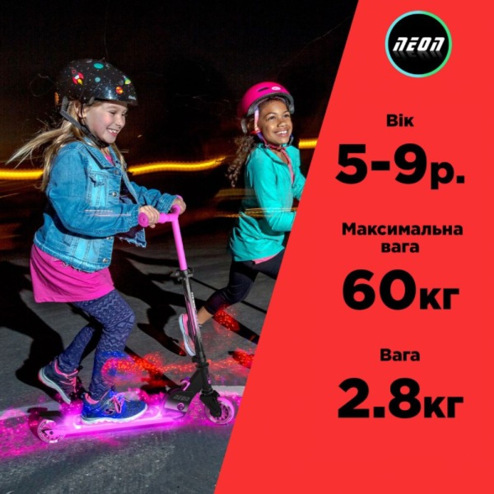 Neon Dynamo складний і має регульоване по висоті кермо. В ньому є Все, що вам потрібно, щоб підтримувати та винагороджувати рух! Ідіть яскраво, ідіть у стилі Neon.