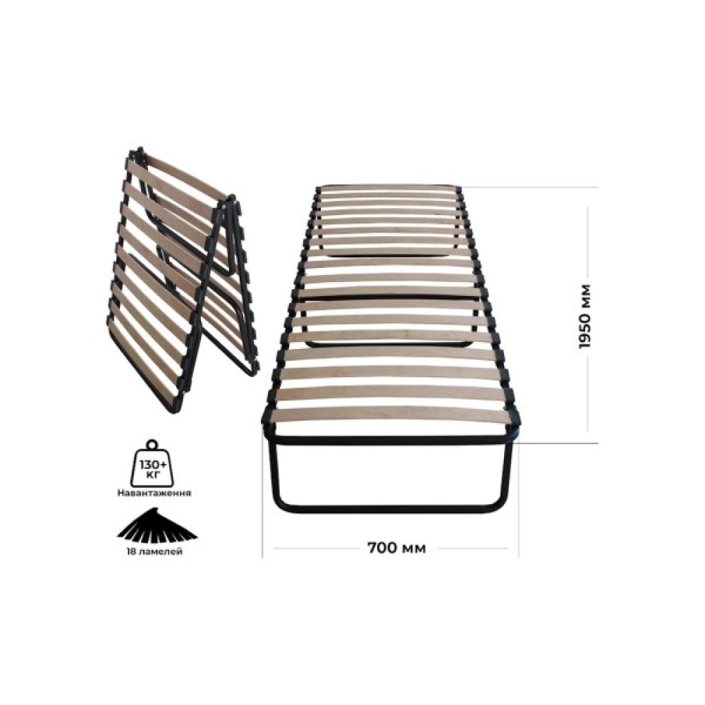 - Ламелі: 18 ламелей по 9 штук на кожній половині - ці ламелі забезпечують комфортну опору для матраца та підтримують користувача в оптимальному положенні.