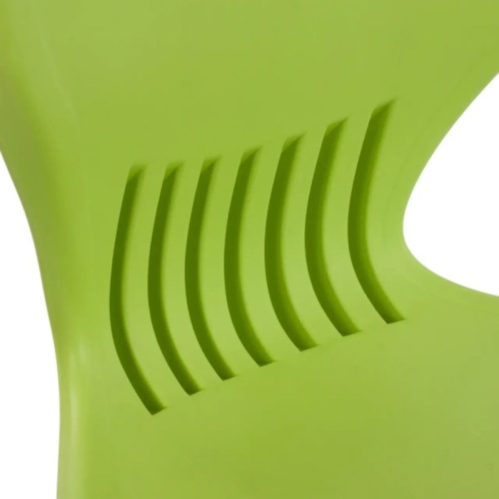 Основні переваги вологостійкість (не пошкоджується від контакту з рідиною) не вбирає в себе запахи їжі або миючих речовин ергономічний дизайн (спинка та сидіння максимально відтворює будову хребту) легкий в прибиранні (для швидкого результату зітріть бруд мокрою ганчіркою і просушіть, а для повноцінного збирання використовуйте миючі засоби) компактність та мобільність (легко пересувати завдяки отворам під руку в спинці стільчика).