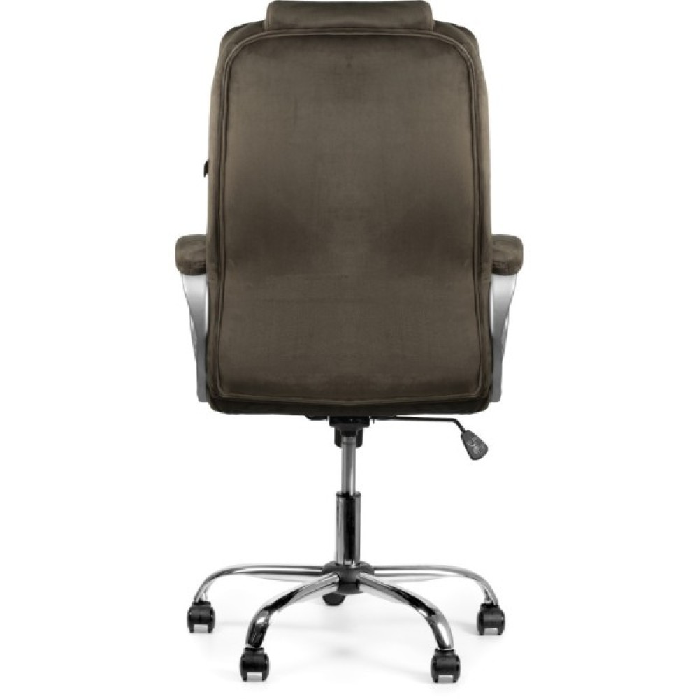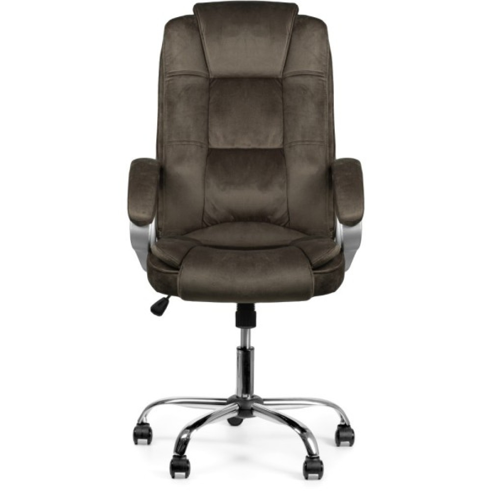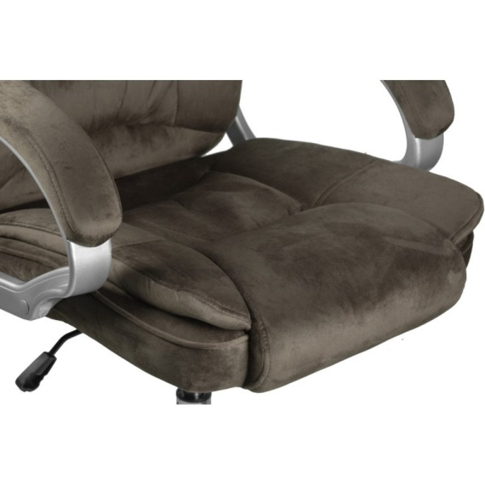 Комфортне та зручне крісло. Оббивка коричневого кольору з мікрофібри — красивої, зносостійкої та приємної на дотик тканини. Така оббивка не парить, за нею легко доглядати.