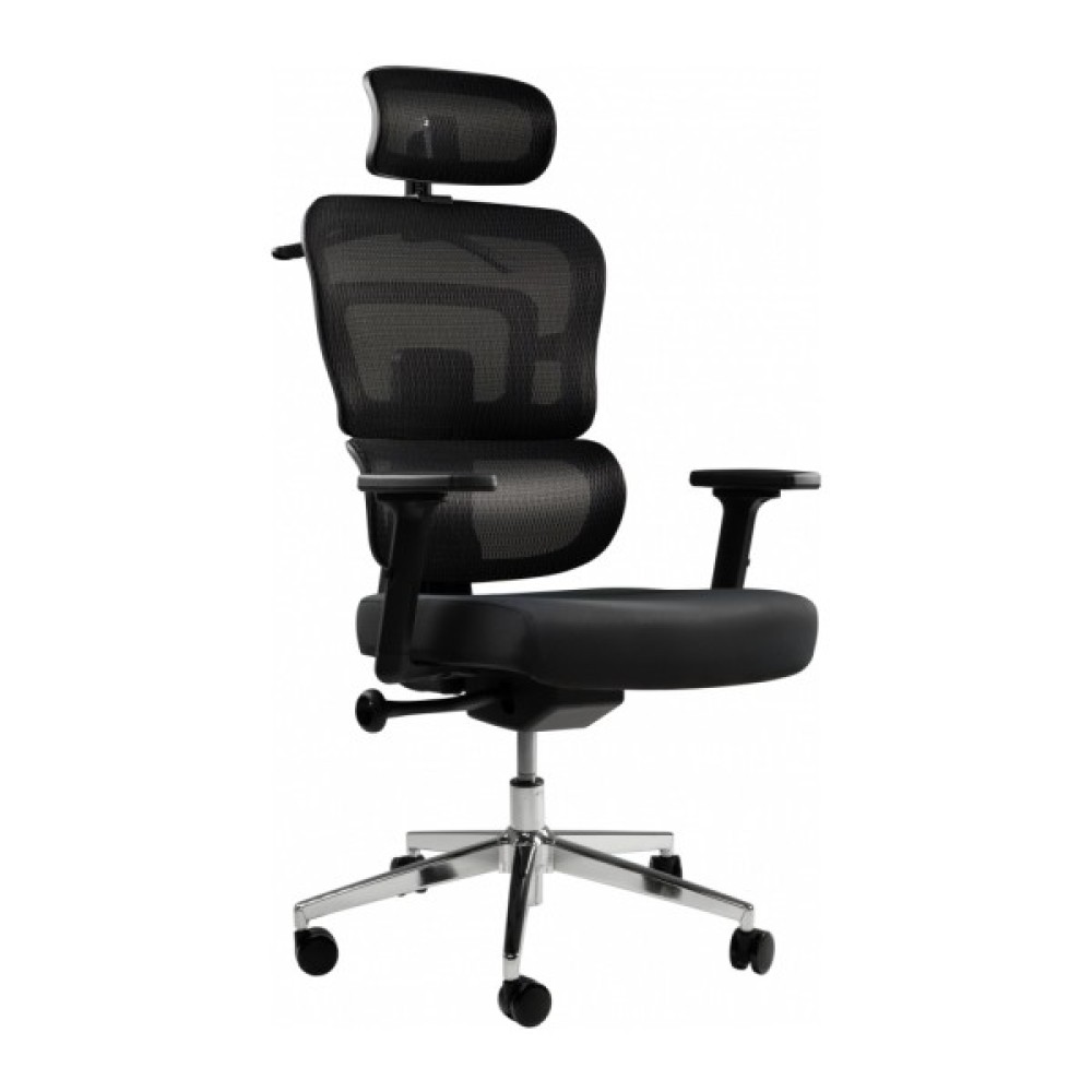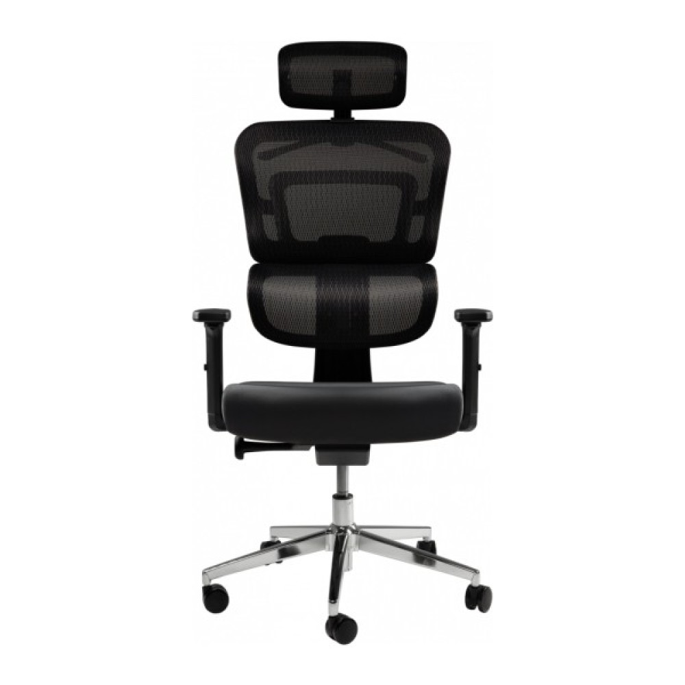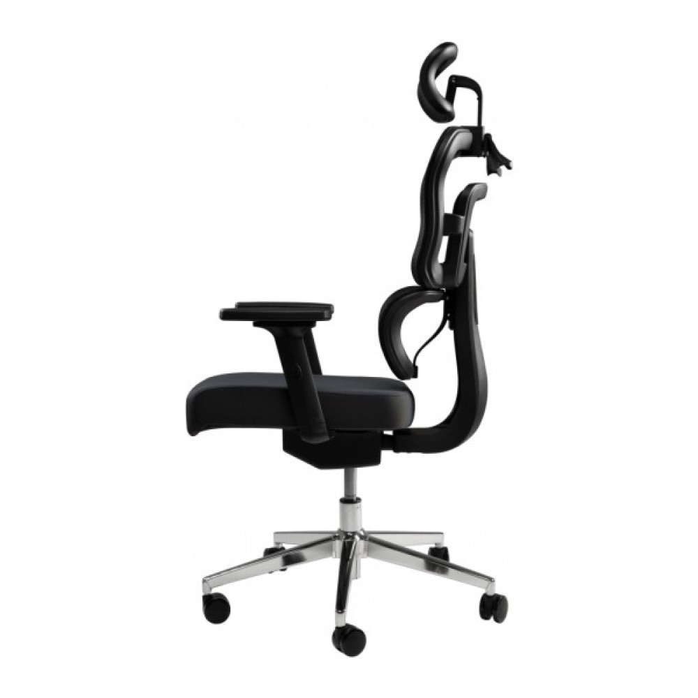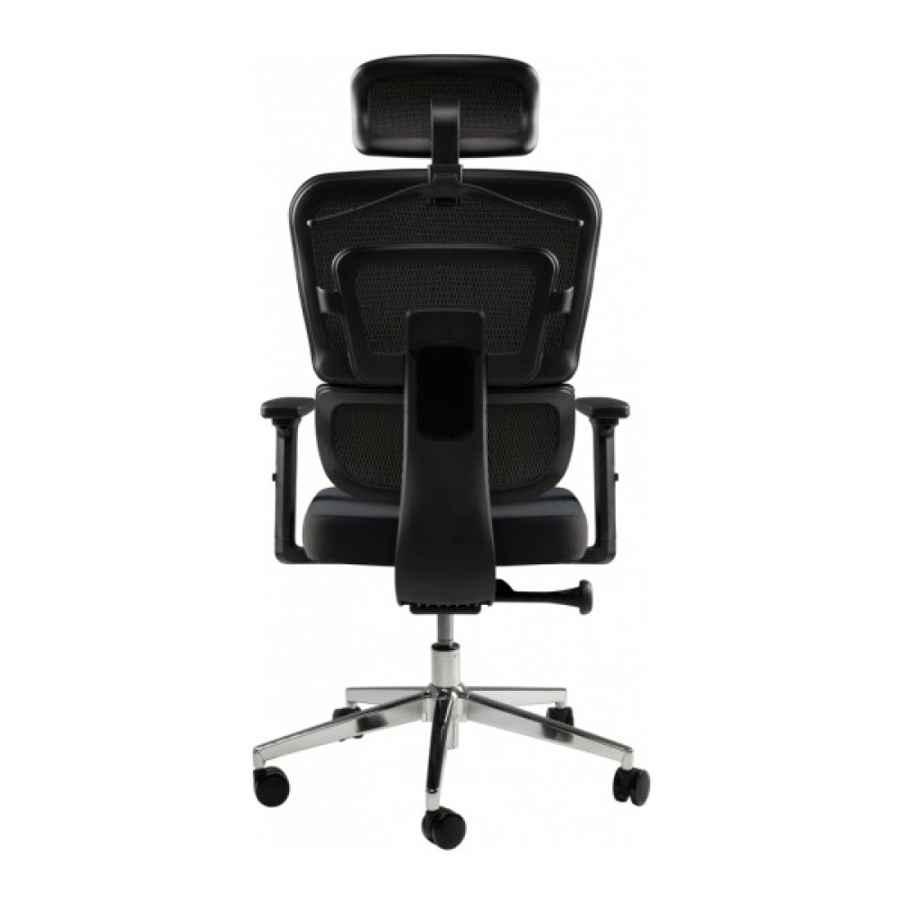 Ортопедична спинка, що складається з двох частин, забезпечує правильну підтримку спини. Вигин нижньої частини – підтримує поперек. Вся конструкція разом з підголівником допомагає уникнути проблем з поставою при тривалій сидячій роботі та забезпечує гарне самопочуття. М'який регульований підголівник дозволяє адаптувати його до індивідуальних потреб користувача. Ви можете зробити налаштування за висотою та горизонтальним положенням.