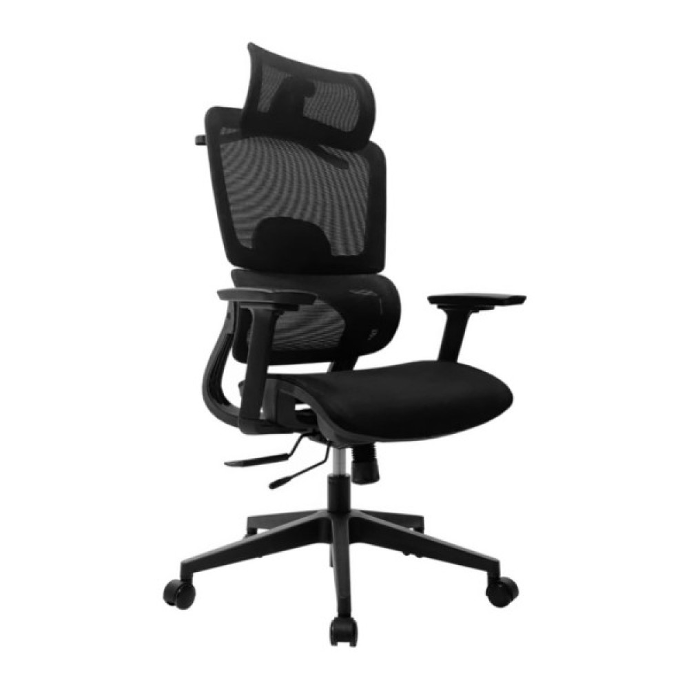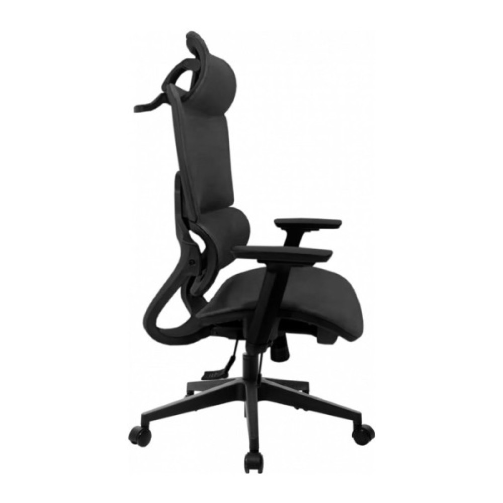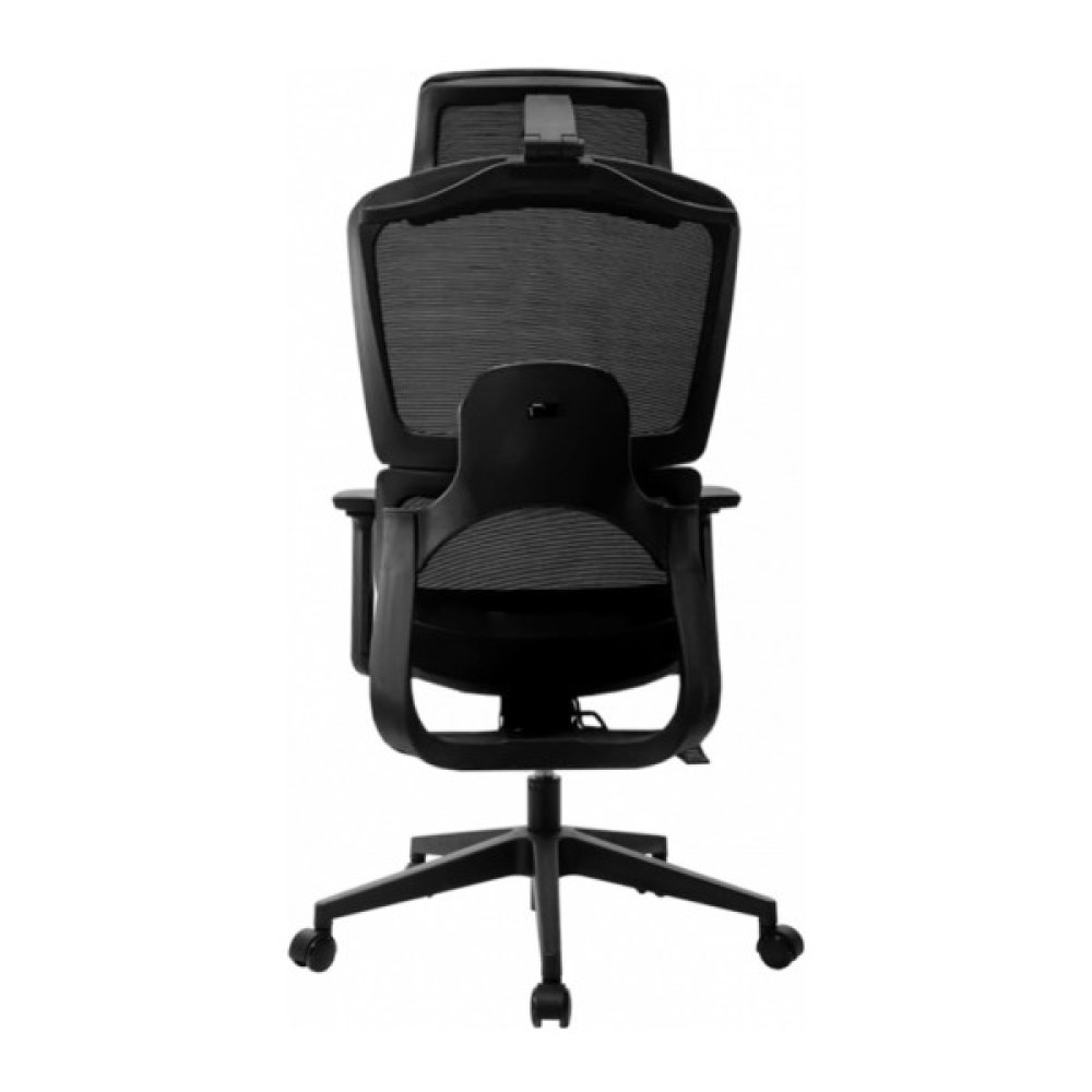 Спинка крісла має ортопедично правильний вигин, який ідеально підтримує поперек, знижуючи ризик виникнення болю та втоми. Вона складається із двох частин, що забезпечує оптимальне положення спини. Регульований підголівник дозволяє налаштувати його кут нахилу та висоту, забезпечуючи підтримку голови в правильному положенні. Спинка в поєднанні з підголівником дає можливість сидіти з правильною поставою, зменшуючи навантаження на спину і шию. Для індивідуального налаштування в кріслі також передбачено регулювання глибини сидіння.