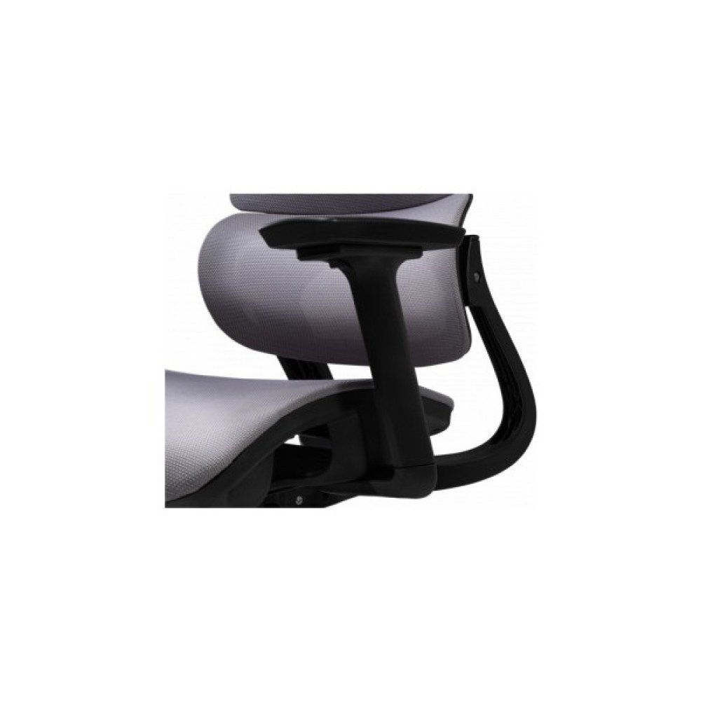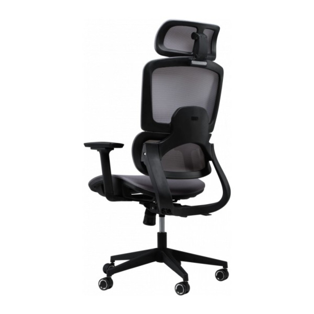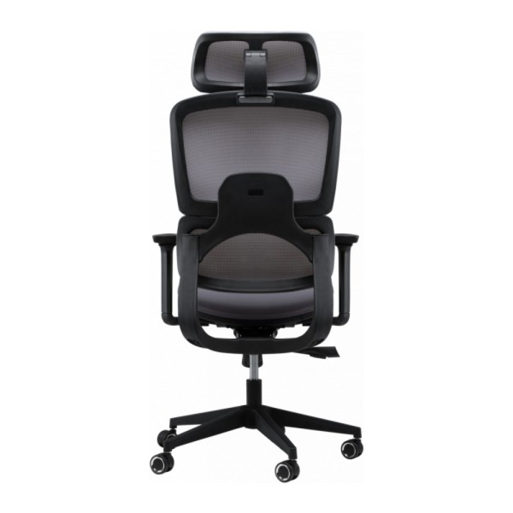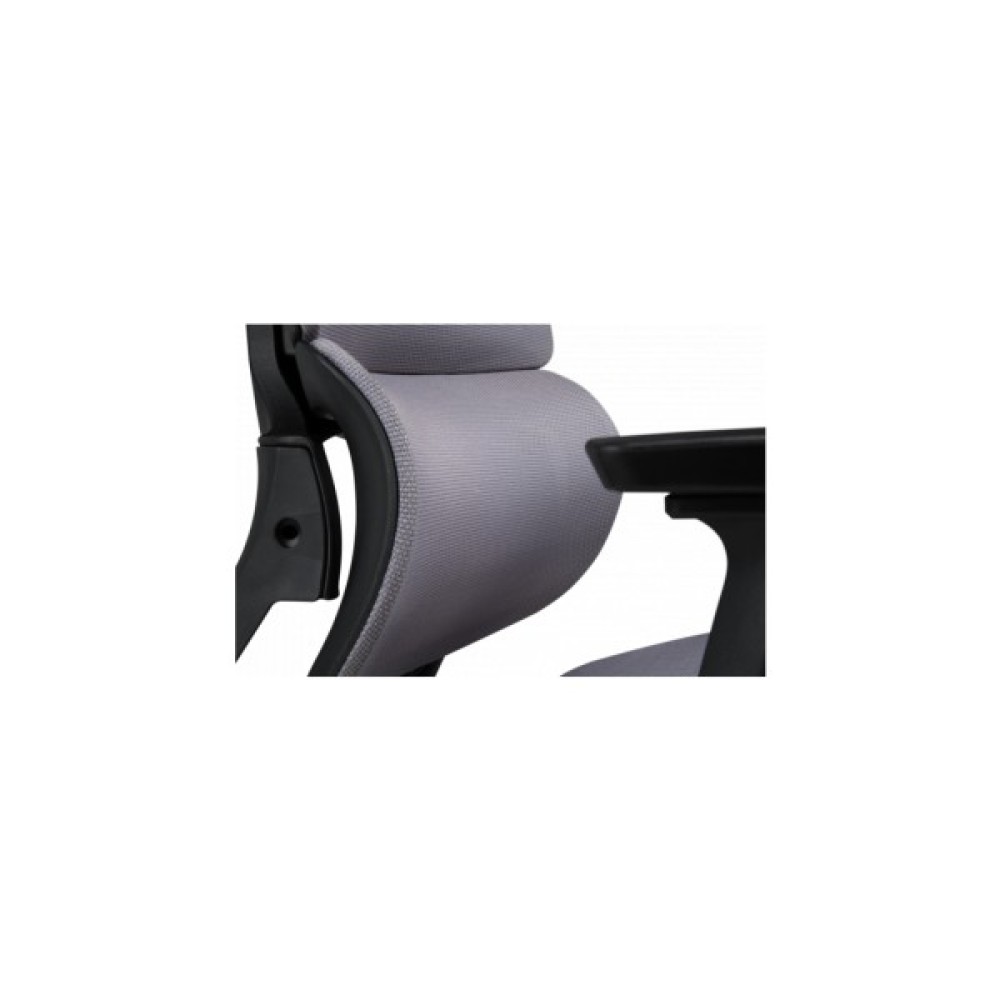 Спинка крісла має ортопедично правильний вигин, який ідеально підтримує поперек, знижуючи ризик виникнення болю та втоми. Вона складається із двох частин, що забезпечує оптимальне положення спини. Регульований підголівник дозволяє налаштувати його кут нахилу та висоту, забезпечуючи підтримку голови в правильному положенні. Спинка в поєднанні з підголівником дає можливість сидіти з правильною поставою, зменшуючи навантаження на спину і шию. Для індивідуального налаштування в кріслі також передбачено регулювання глибини сидіння.