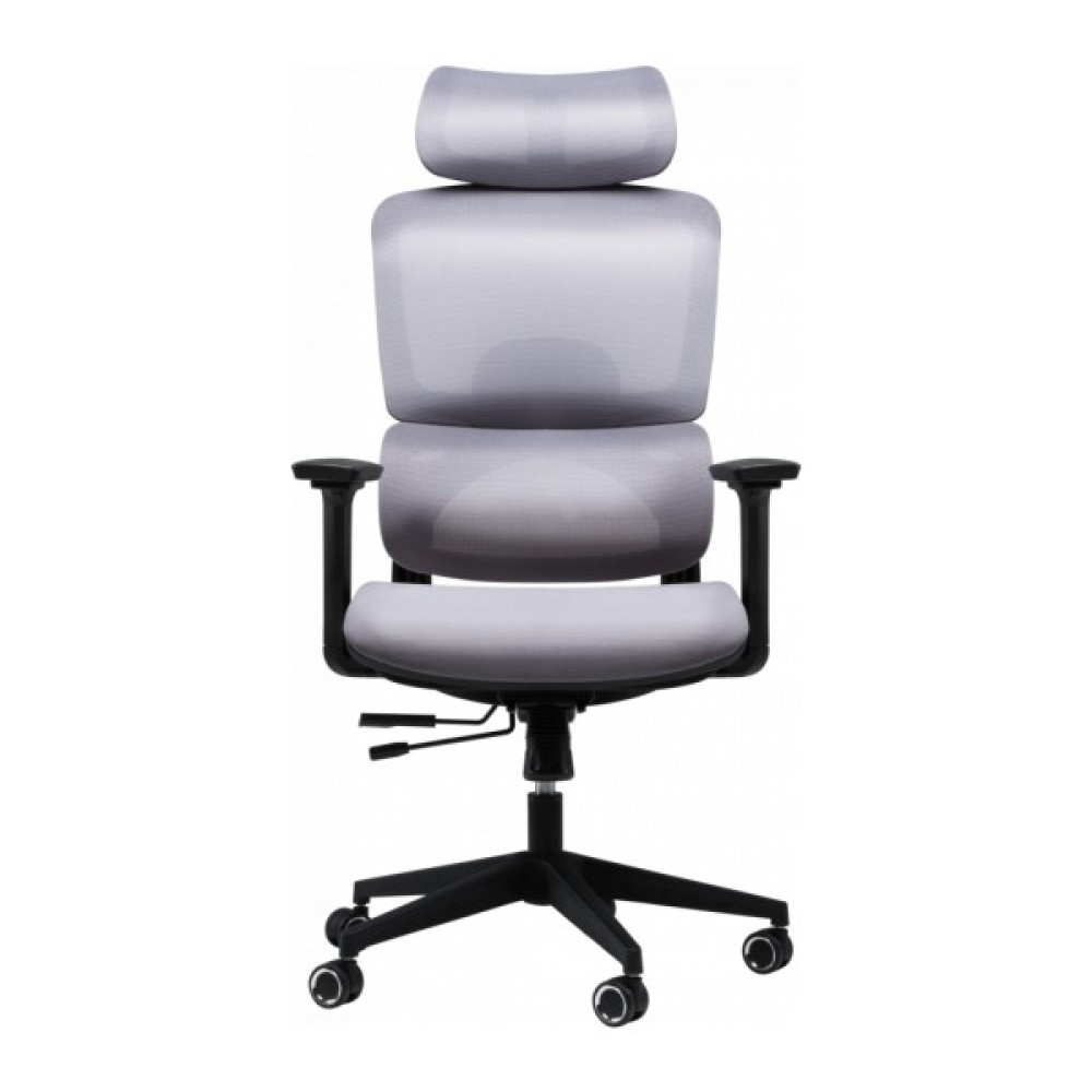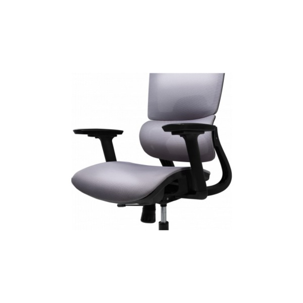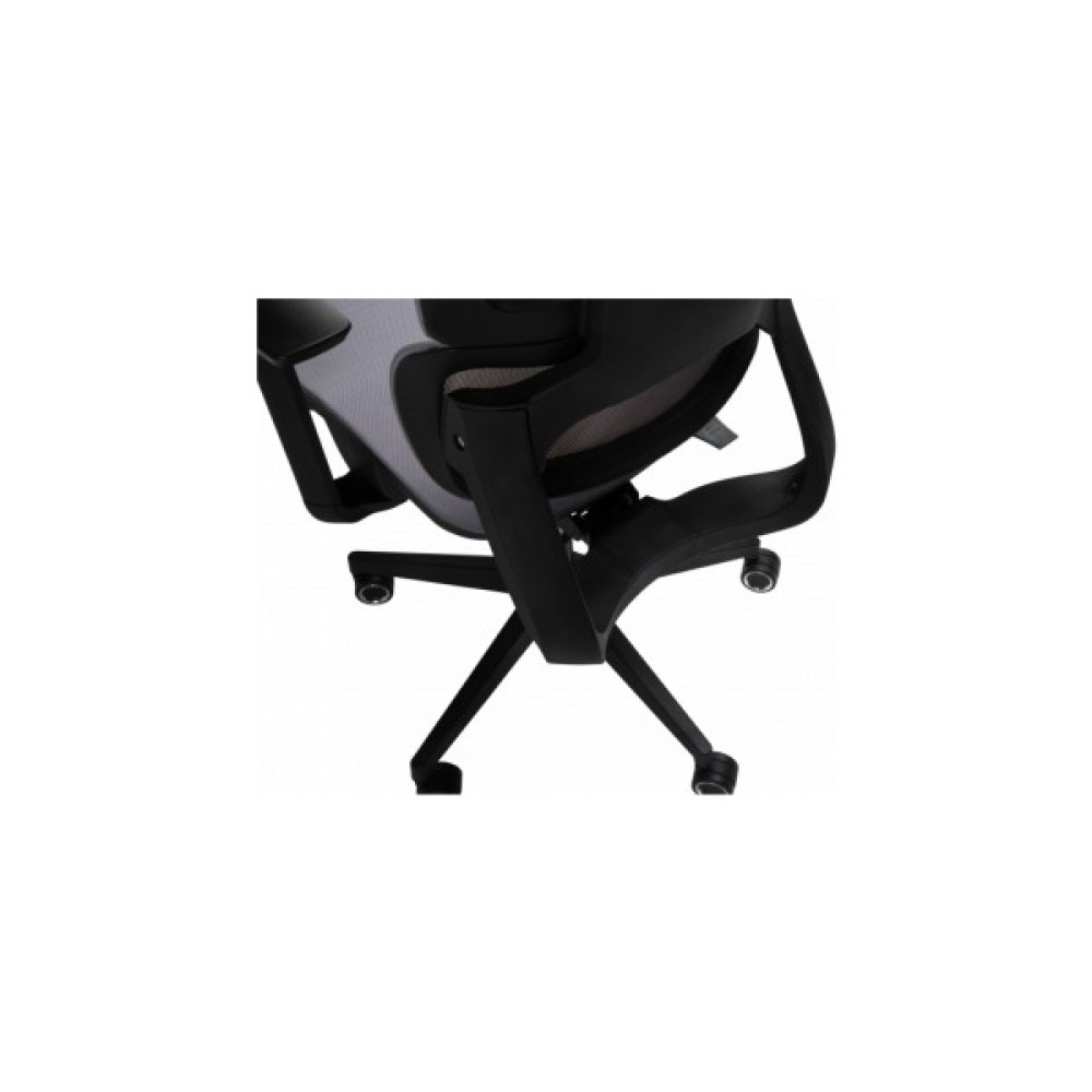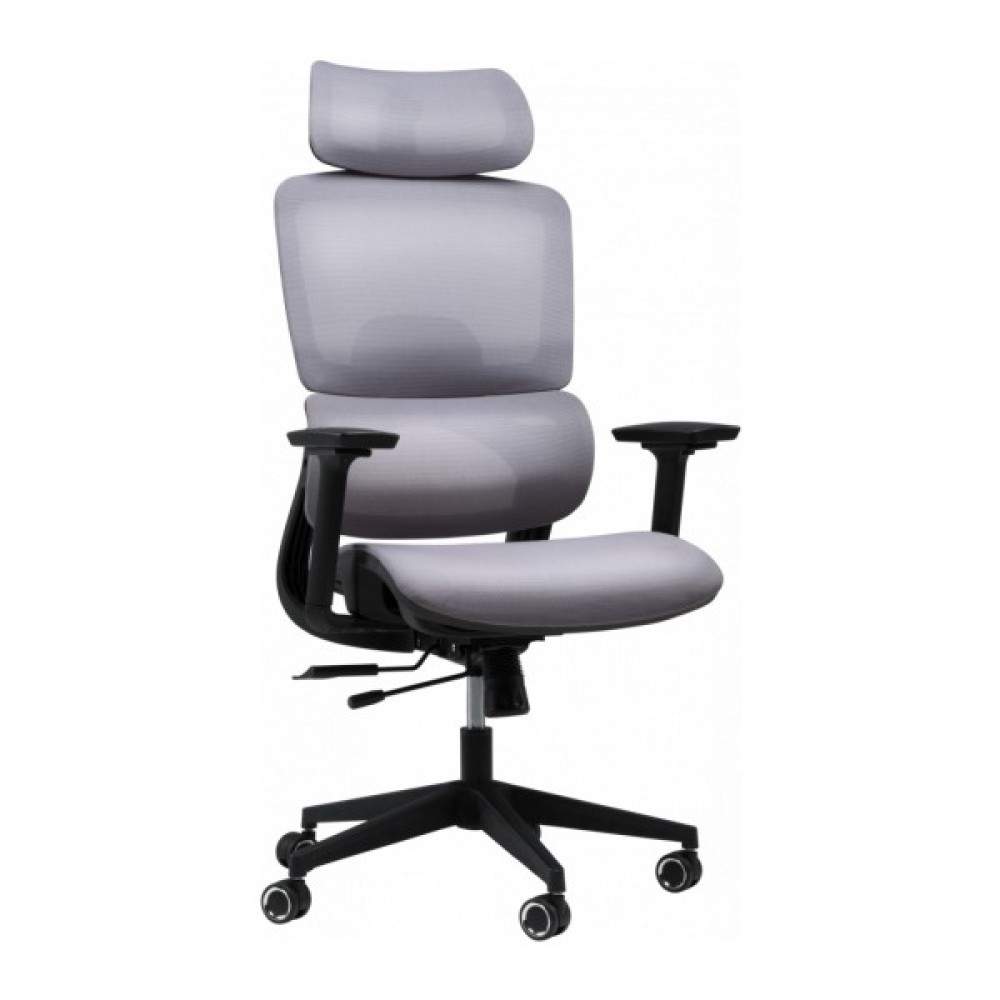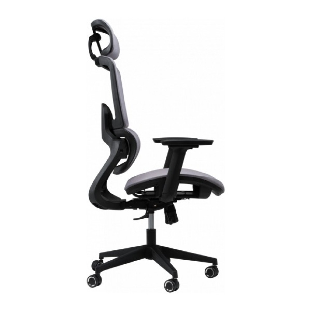 Спинка крісла має ортопедично правильний вигин, який ідеально підтримує поперек, знижуючи ризик виникнення болю та втоми. Вона складається із двох частин, що забезпечує оптимальне положення спини. Регульований підголівник дозволяє налаштувати його кут нахилу та висоту, забезпечуючи підтримку голови в правильному положенні. Спинка в поєднанні з підголівником дає можливість сидіти з правильною поставою, зменшуючи навантаження на спину і шию. Для індивідуального налаштування в кріслі також передбачено регулювання глибини сидіння.