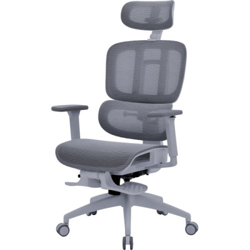 Регульована поперекова підтримка забезпечує ергономічно правильне положення спини, щоб запобігти перенапрузі при тривалому сидінні. Кут нахилу та висота підголівника регулюється для оптимального позиціювання. А завдяки регулюванню спинки за висотою ви можете налаштувати зручне положення спинки для свого зросту. Нейлонові 3D підлокітники, покриті м’яким поліуретаном, регулюються за висотою, вперед-назад і змінюють кут повороту по горизонталі (назовні або всередину). Для регулювання нахилу та фіксації спинки, у кріслі використовується синхромеханізм, що у поєднанні з функцією регулювання глибини сидіння надає ще більше комфорту. Як приємний бонус до всіх вище перерахованих можливостей, крісло обладнане складною підставкою для ніг. Вона допоможе зняти напругу та покращити кровообіг під час перерв, а також дозволяє зайняти повністю горизонтальне положення, використовуючи нахил спинки.