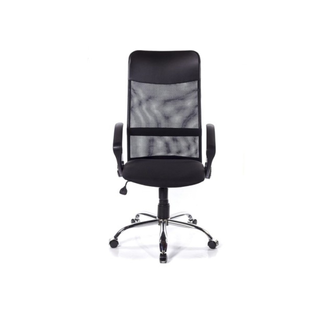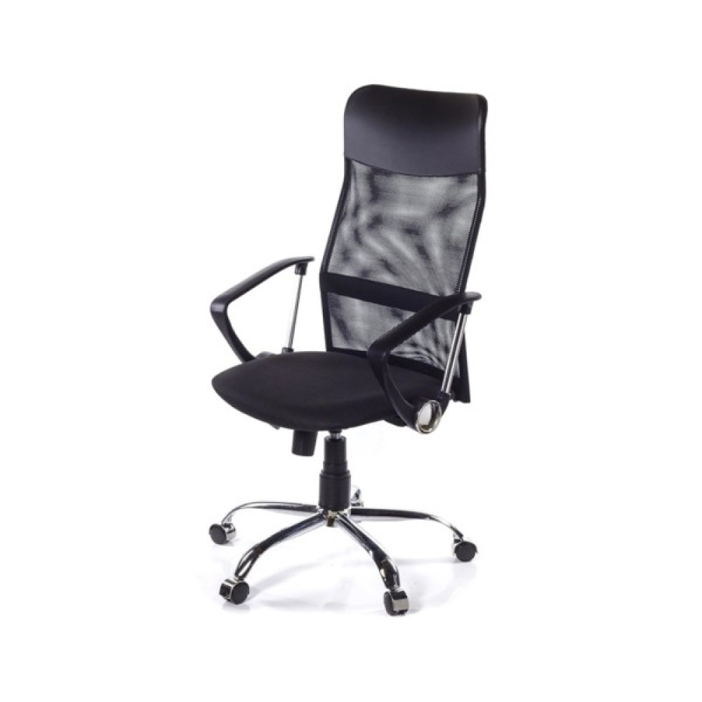 Підлокітники. У даній моделі стильні комбіновані підлокітники: одна з опор з хромованого металу, а інші деталі з чорного пластику. Робоча поверхня пластику текстурована, завдяки чому руки не зісковзують в процесі роботи. Металева вставка гармонує з хромованою хрестовиною, створюючи єдиний завершений ансамбль. Висота підлокітників в нижньому положенні газліфта має висоту, яка дає можливість засунути крісло під робочий стіл для звільнення навколишнього простору.
