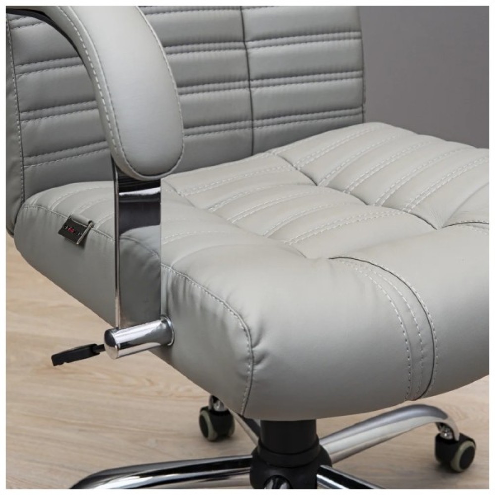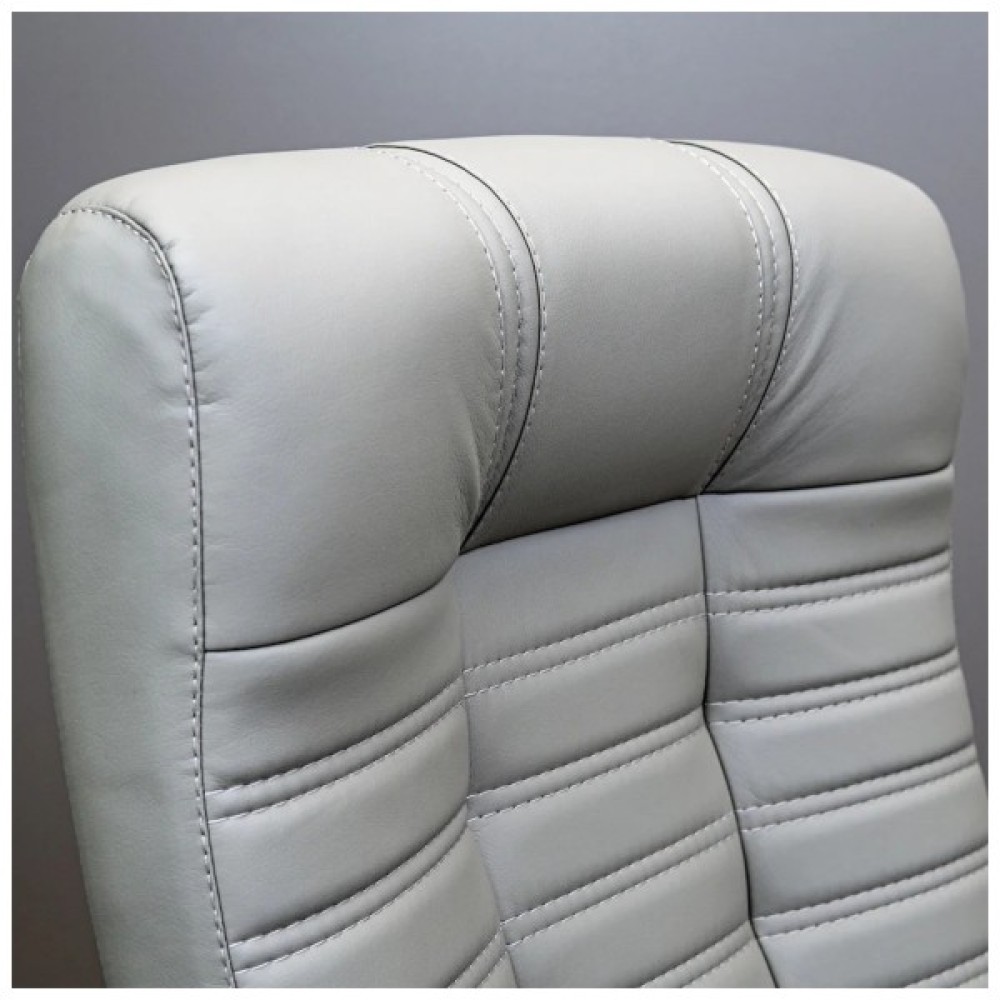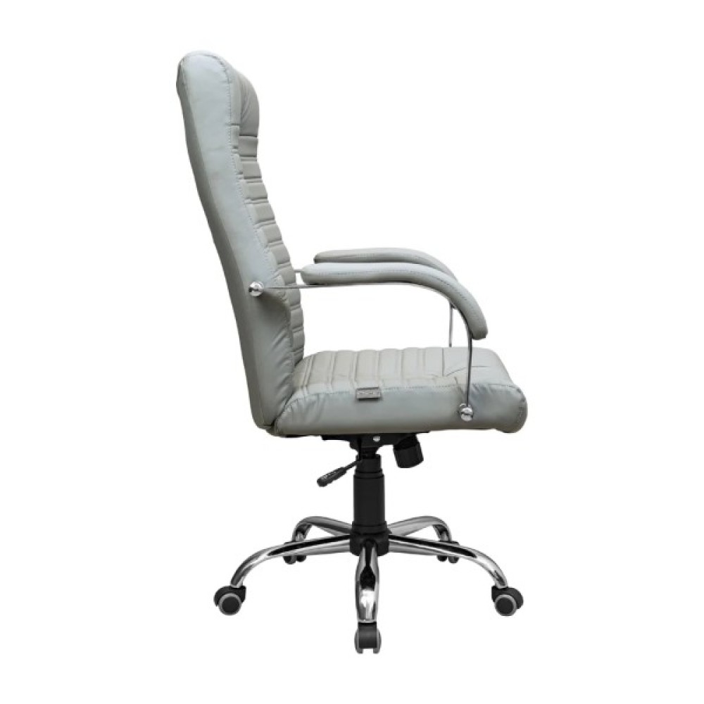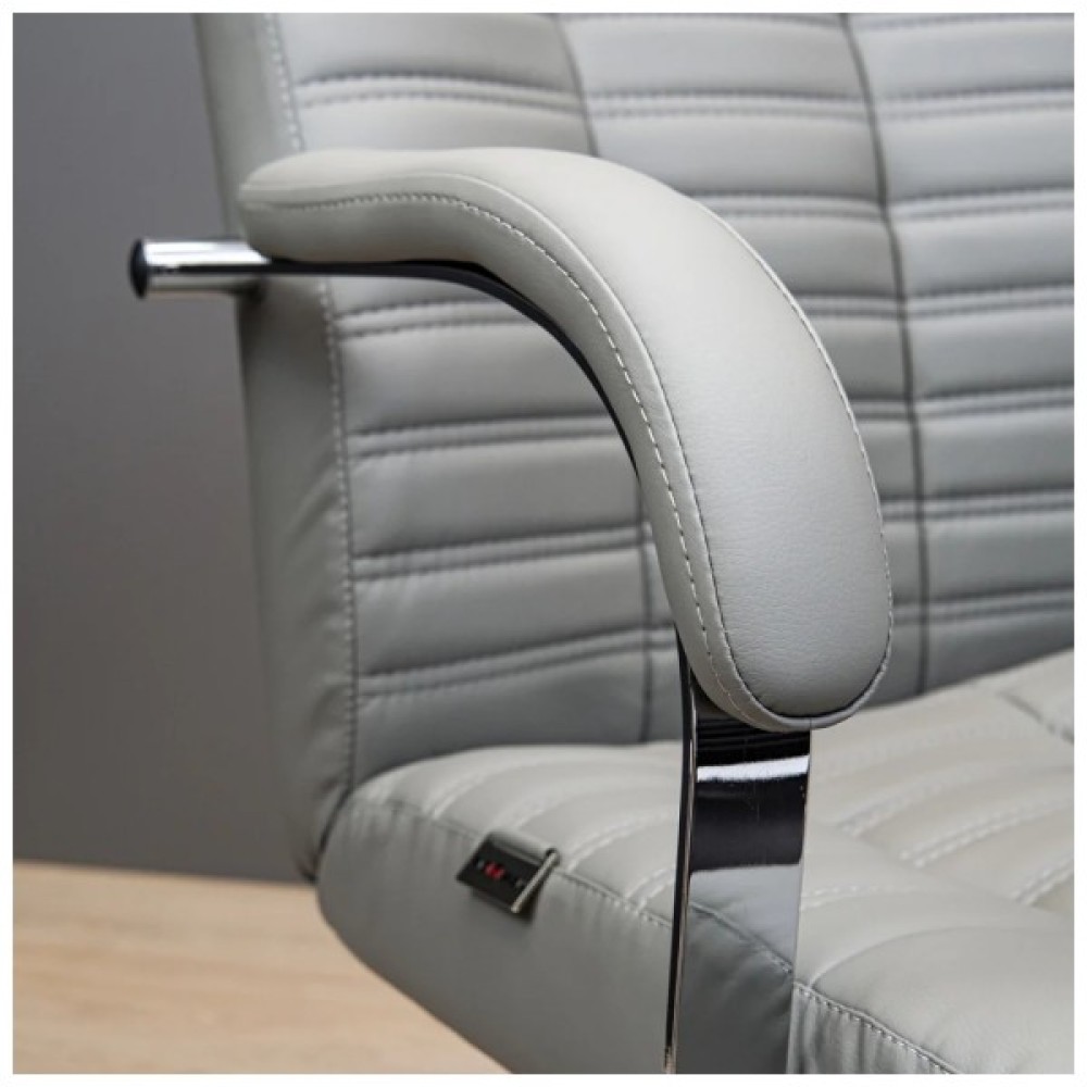 Крісло має хромовані підлокітники з м’якими накладками, що дозволяє комфортно спиратися на них у будь-якому положенні та розміщувати руки під час відпочинку. Стильна хромована хрестовина оснащена обгумованими роликами, що дозволяє безшумно та безпечно пересувати крісло по різних поверхнях, не боячись їх пошкодити.