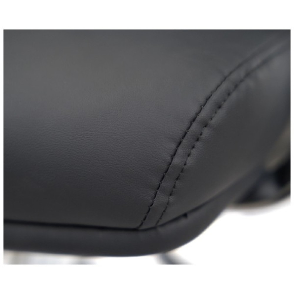 Дизайн. Елегантна класика – ось як можна охарактеризувати це крісло. Силует досить стриманий, але завдяки вдалому поєднанню ліній прошивки, шкіри та хромованого металу модель виглядає розкішно та затишно. Сидіння та спинка прикрашені перетяжками прошивки, які разом із товстим шаром наповнювача формують зручне посадкове місце. Блискучі металеві деталі гармонійно обрамляють оббивку і підкреслюють красу крісла.