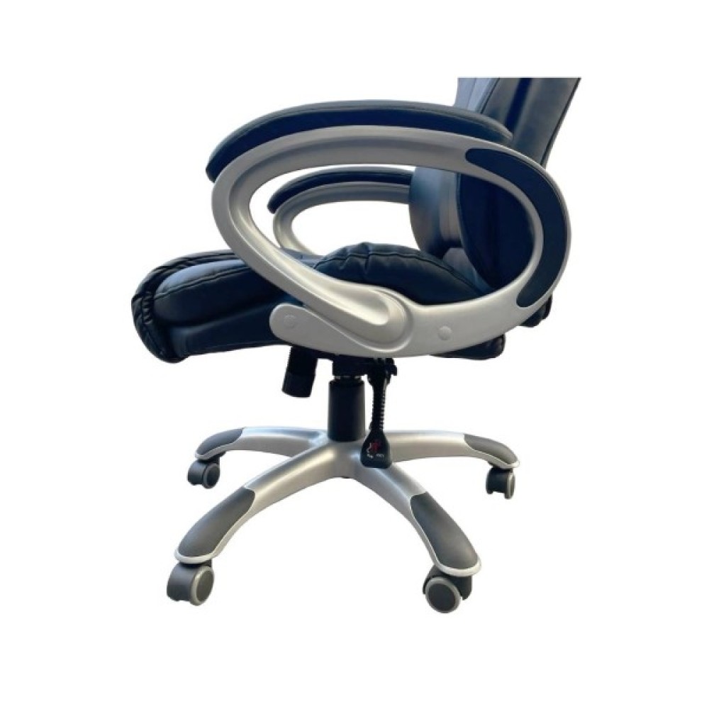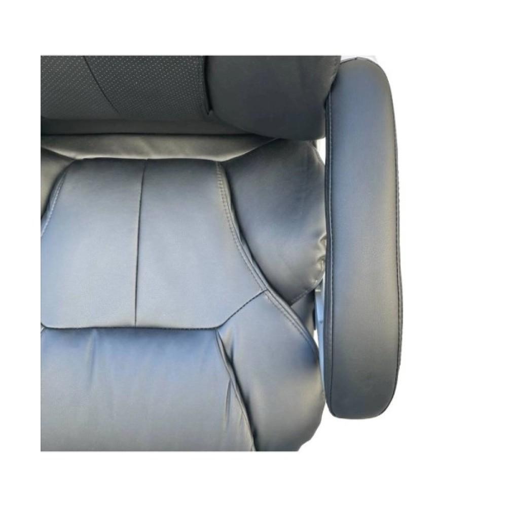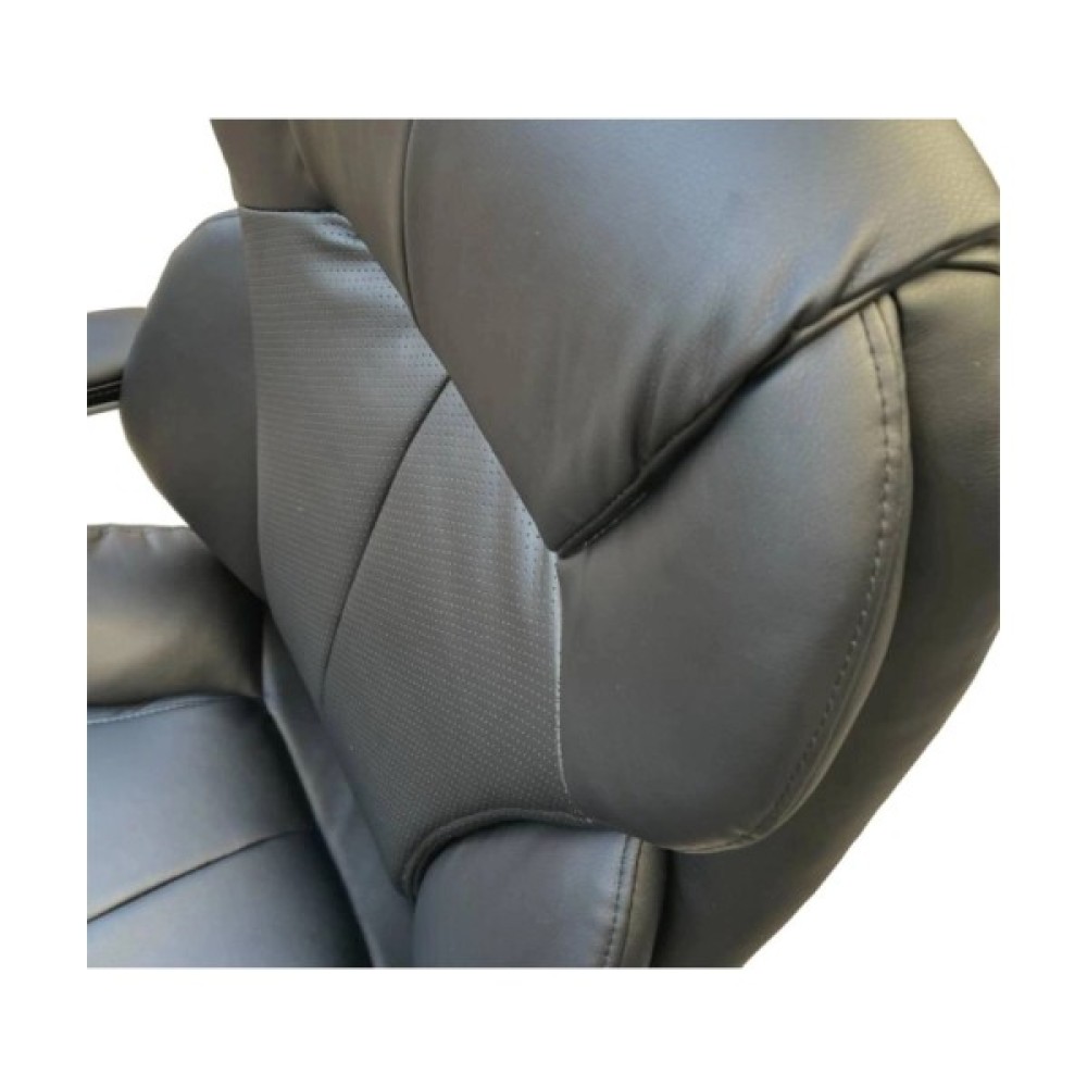 Оббивка. Для крісла було обрано універсальну оббивку, а саме якісну екошкіру. Цей матеріал практично не поступається своїми якостями натуральній шкірі, а ціна - це його основна перевага. Він має натуральну основу і відмінно зарекомендував себе за роки використання в офісі. Екошкіра - це сучасний, міцний матеріал, простий у догляді.