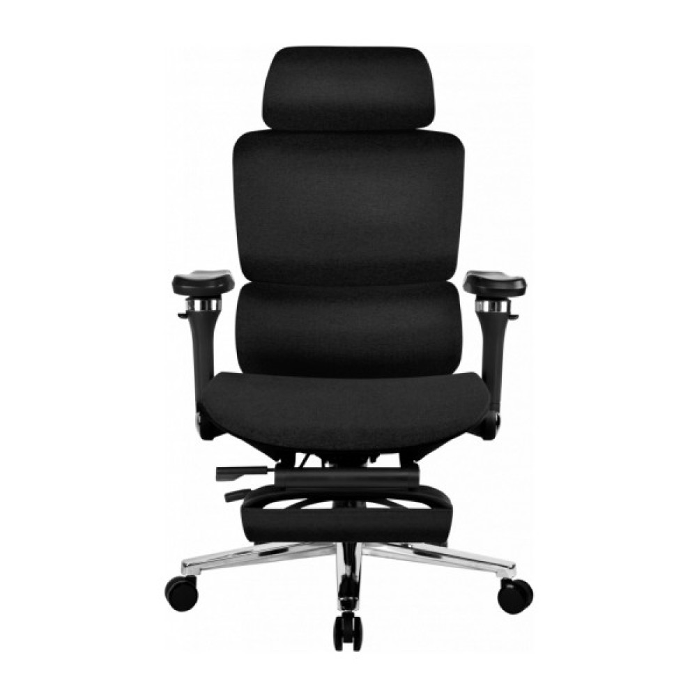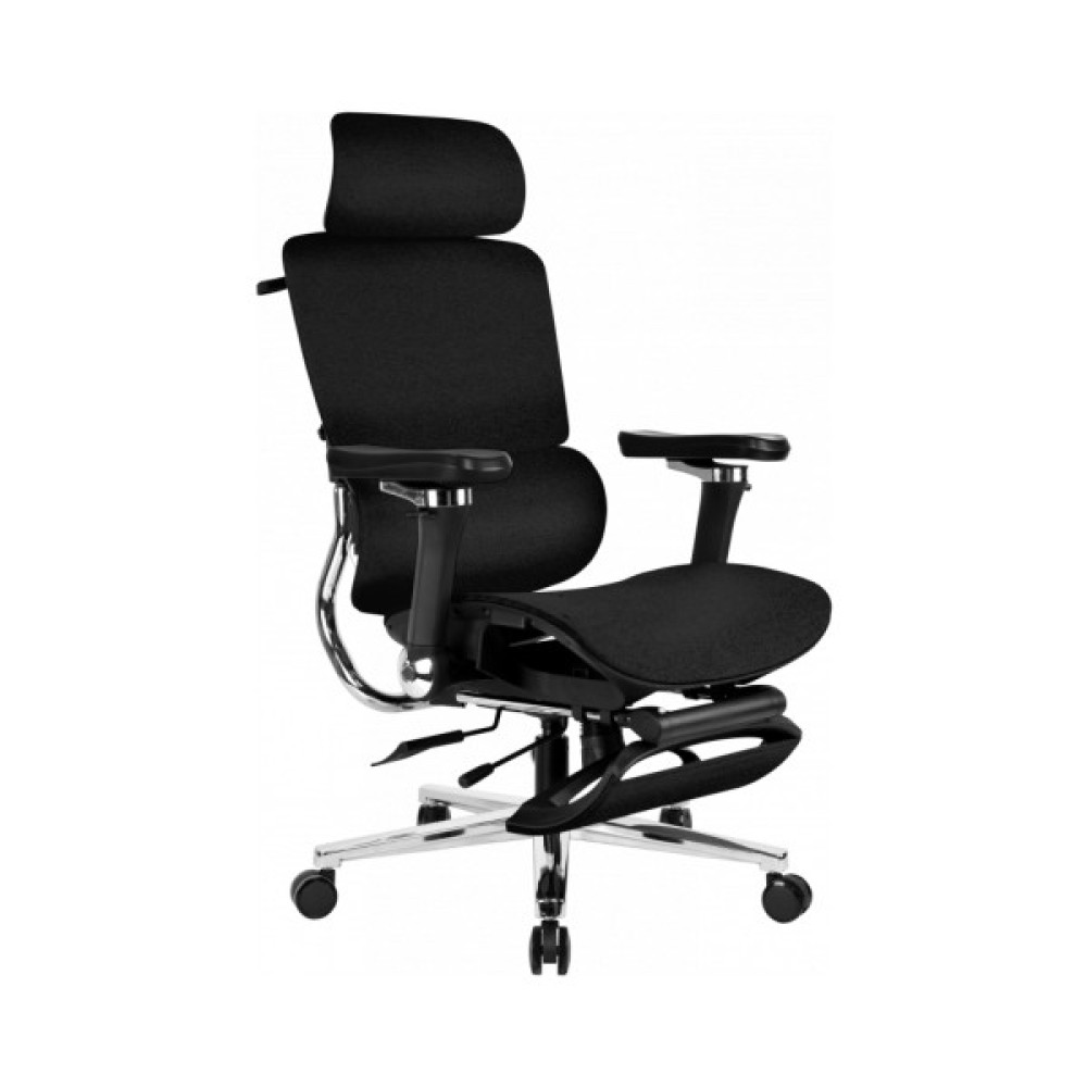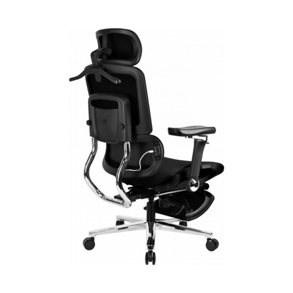 Сидіння та спинка розроблені з урахуванням анатомії людини, завдяки чому підтримується правильне та природне положення тіла. Комфортна м’яка посадка рівномірно підтримує стегна, а двосекційна спинка правильну поставу. Поперекова підтримка має функцію масажу. Регульовані підлокітники допомагають зручно розмістити руки, а підголівник легко налаштовується під зріст користувача, знижуючи навантаження на шию та плечі. Висувна підніжка дозволяє розслабити ноги під час відпочинку.