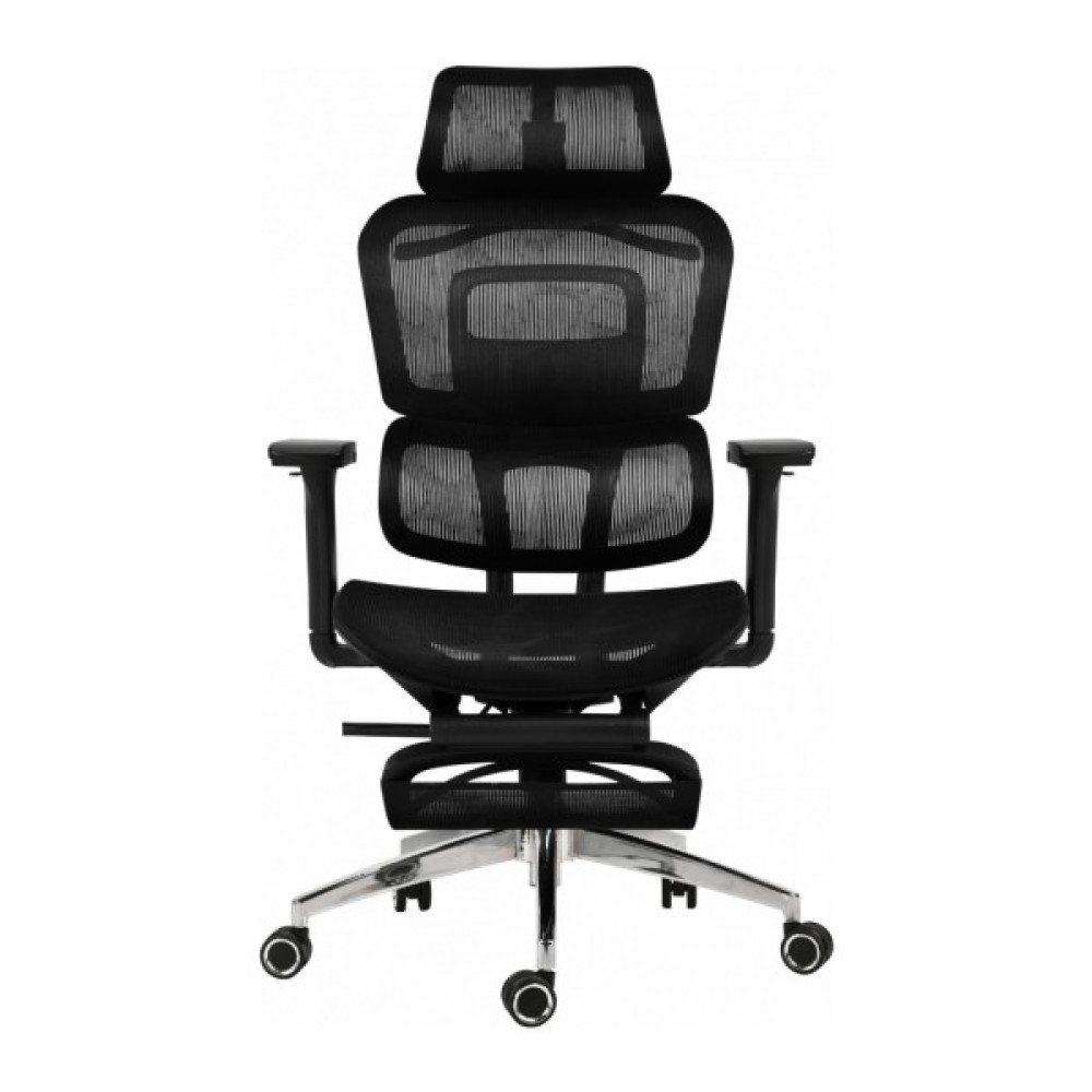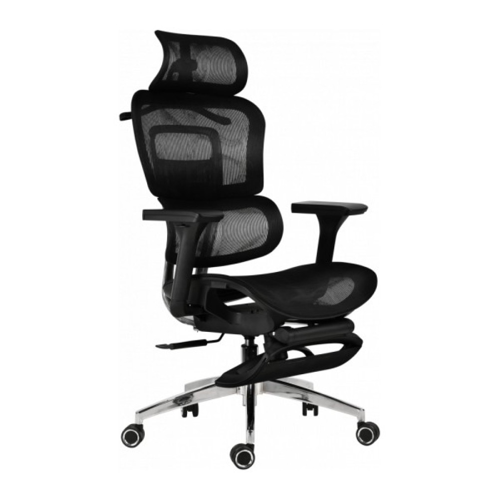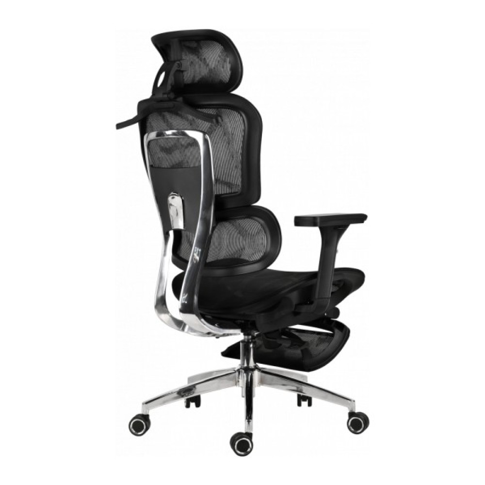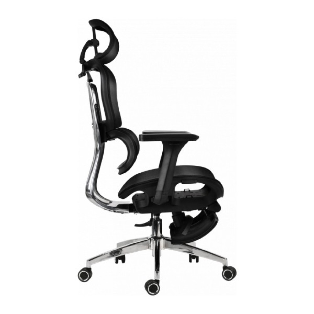 ЕргономічністьМодель передбачає підтримку природного положення тіла під час тривалого сидіння. Сидіння має анатомічний профіль, що забезпечує комфорт і рівномірний розподіл ваги. Конструкція крісла сприяє зниженню напруги в спині та плечовому поясі, підтримуючи правильну посадку під час роботи. Підголівник дозволяє розвантажити шийний відділ і плечі, створюючи відчуття природного комфорту. Підніжка робить відпочинок між роботою більш повноцінним та розслабляючим.