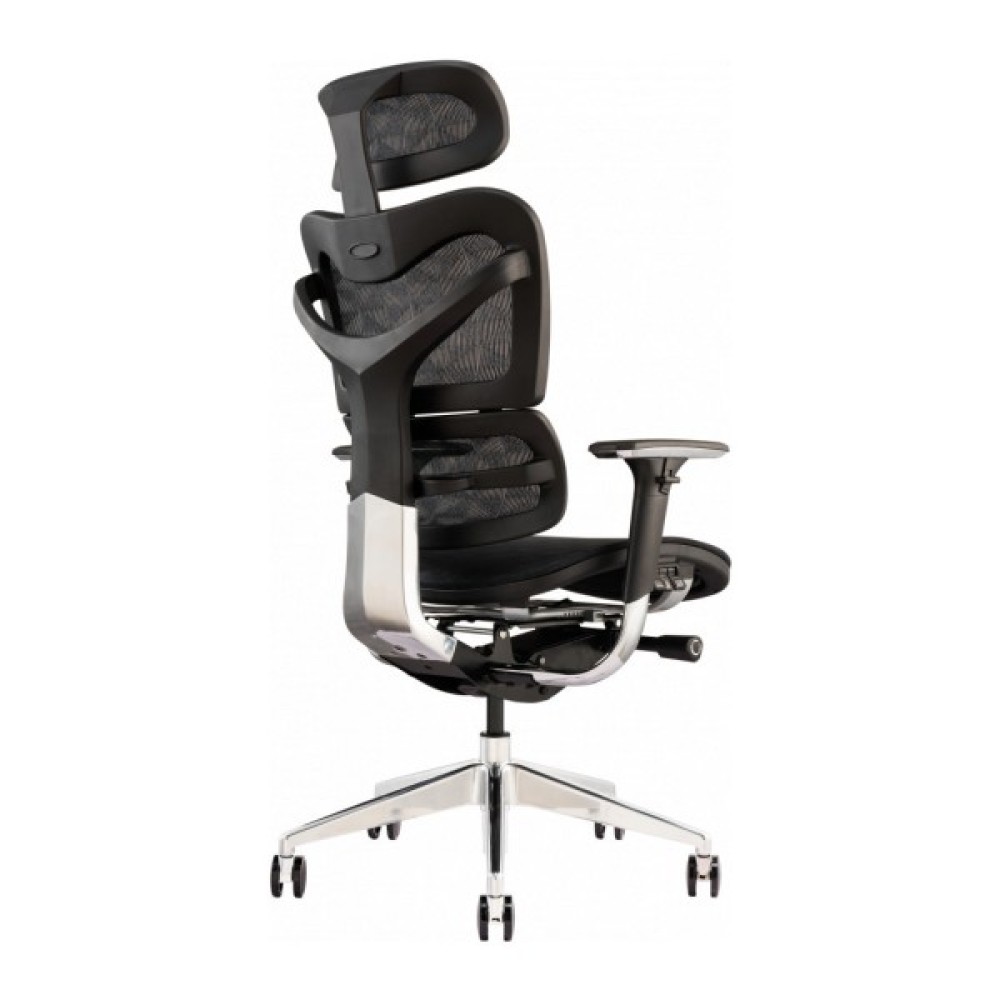 ЗносостійкістьСітчаста тканина, з якої виготовлена оббивка крісла, добре зарекомендувала себе завдяки міцності і повітропроникності. Вона тривалий час зберігає привабливий зовнішній вигляд і стійка до розтягування. Сидіння крісла виготовлено з використанням наповнювача - піни підвищеної щільності з ефектом пам'яті. Металева рама і алюмінієва підставка мають хромоване покриття, колеса прогумовані і мінімізують ковзання по підлозі. Газліфт 4-го класу відповідає за плавність ходу крісла при підйомі або спуску і витримує до 150 кг.