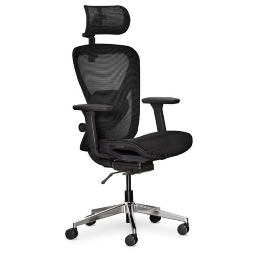 Еластична сітчаста спинка рівномірно розподіляє навантаження, зменшуючи напругу в верхній частині тіла. Подвійна конструкція спинки покращує ергономічність і забезпечує кращу вентиляцію.