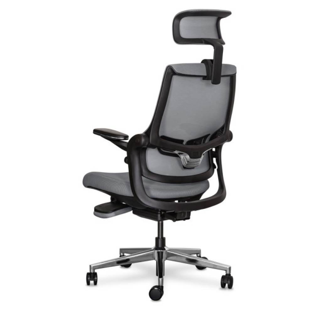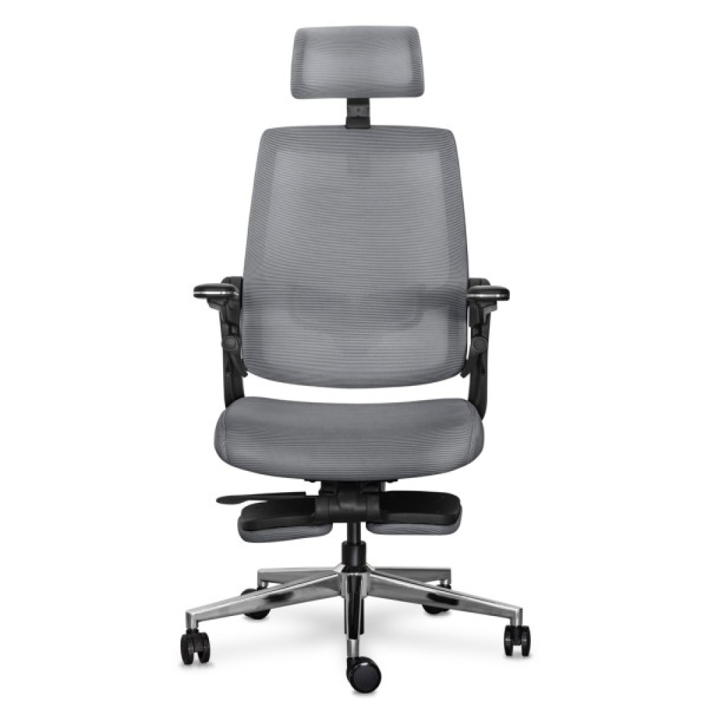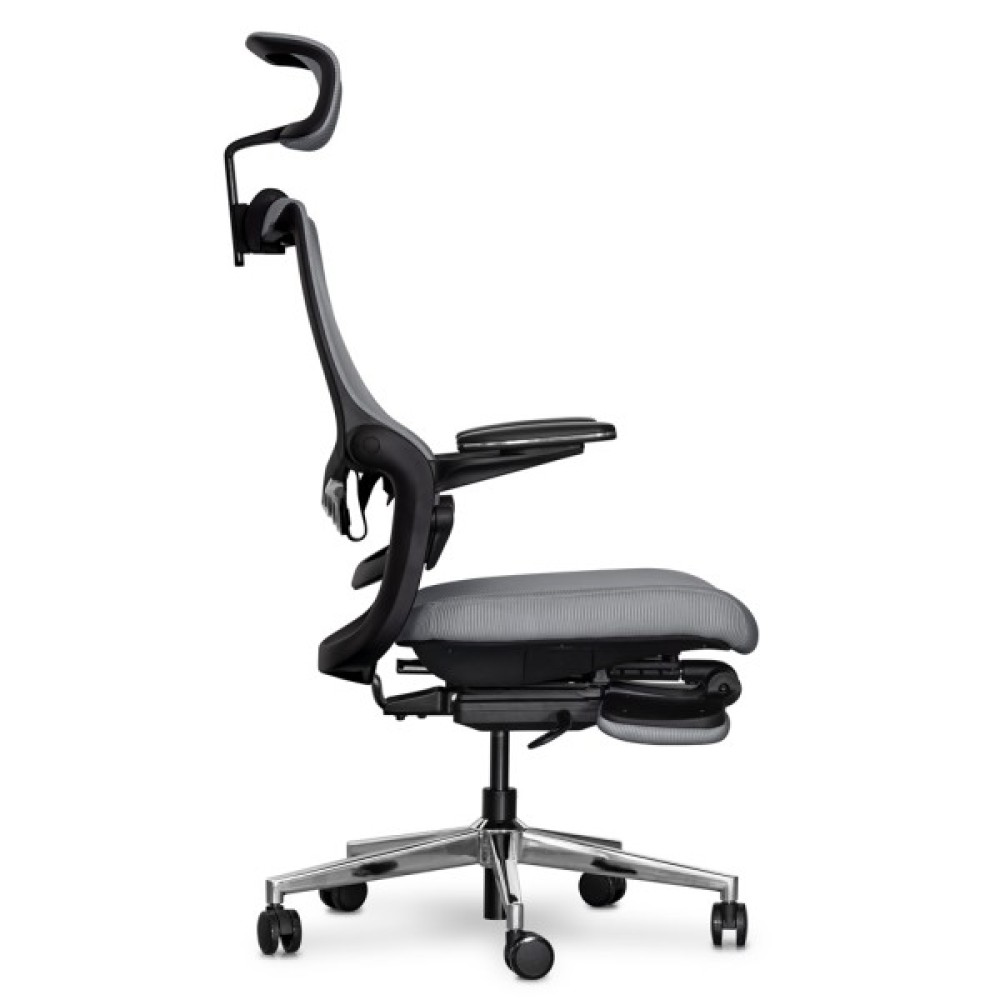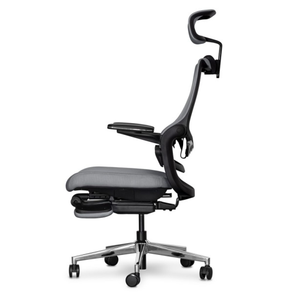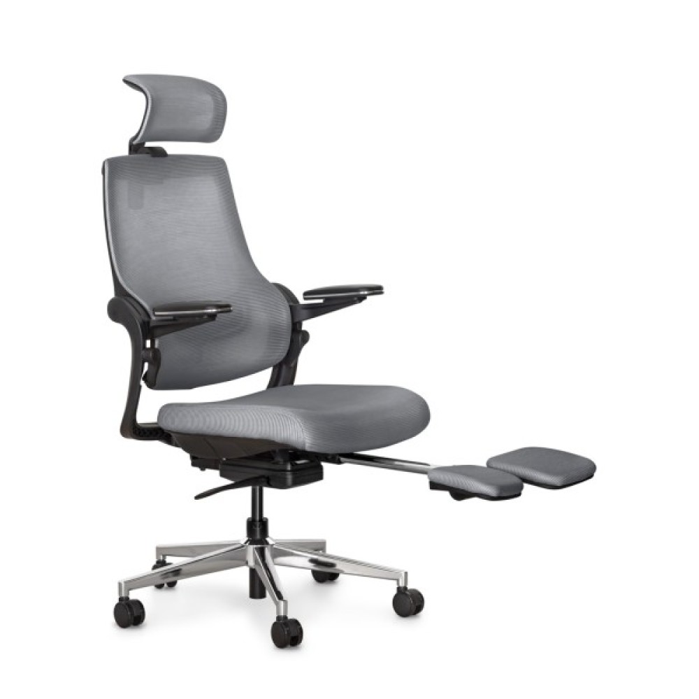 Максимальний нахил спинки при залученні одночасно обох осей регулювань. У цьому режимі користувач може насолоджуватися максимальним відпочинком. Спинка крісла прогинається, відкидається назад, і висувається підставка для ніг, створюючи ідеальні умови для відпочинку або повного релаксу під час перерв у роботі