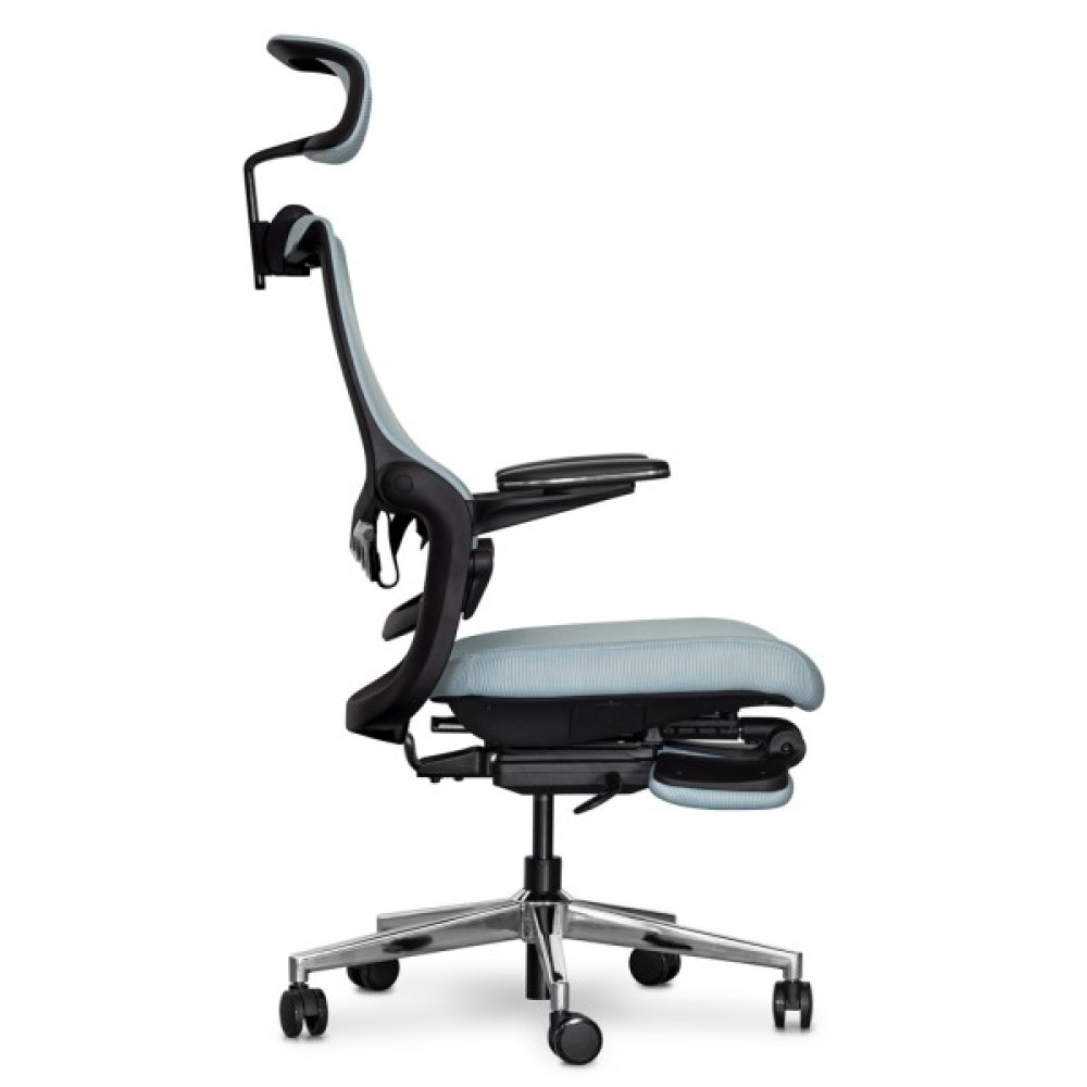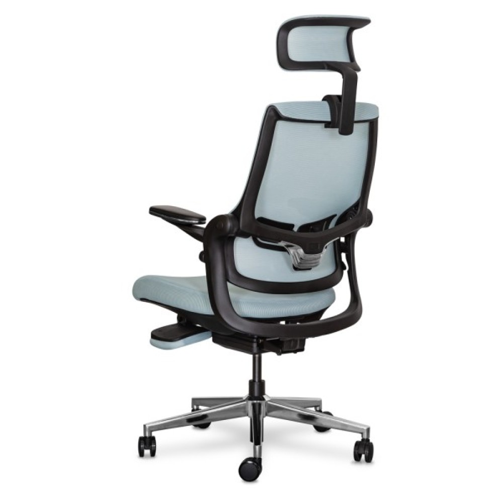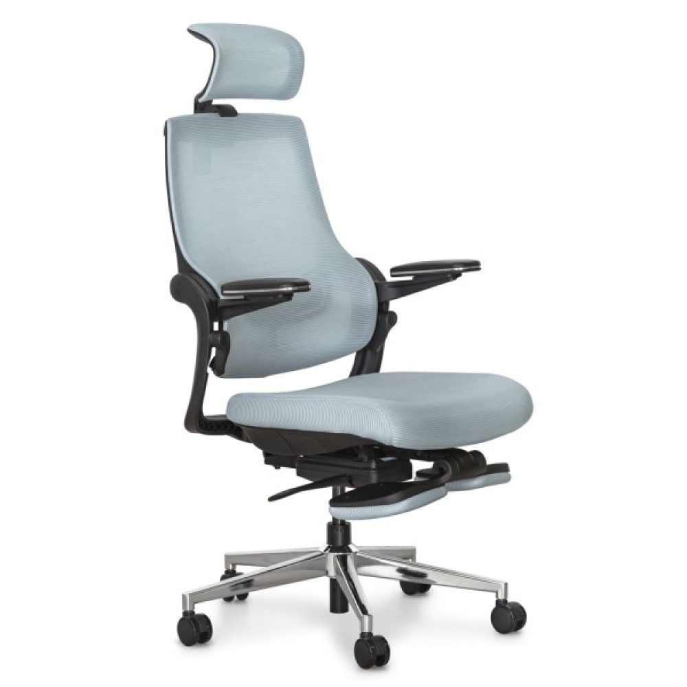 Максимальний нахил спинки при залученні одночасно обох осей регулювань. У цьому режимі користувач може насолоджуватися максимальним відпочинком. Спинка крісла прогинається, відкидається назад, і висувається підставка для ніг, створюючи ідеальні умови для відпочинку або повного релаксу під час перерв у роботі