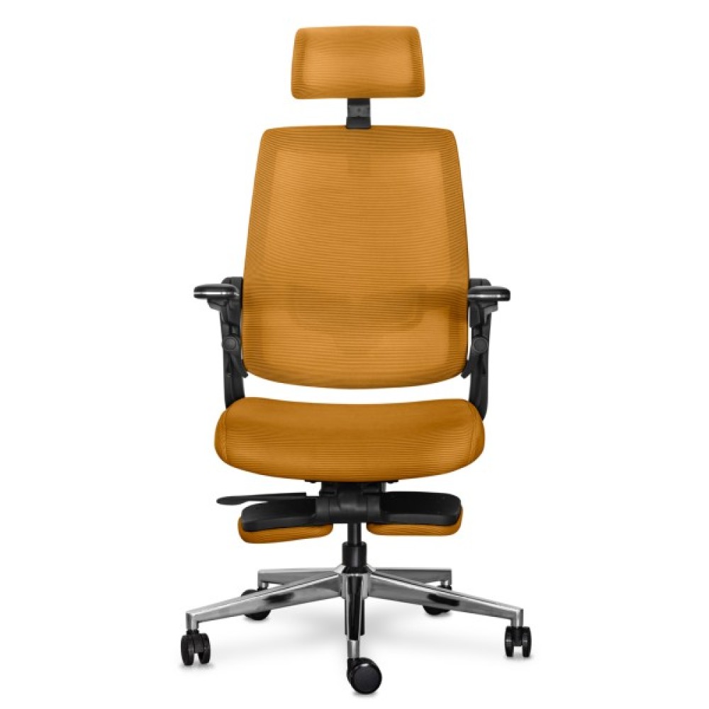 Максимальний нахил спинки при залученні одночасно обох осей регулювань. У цьому режимі користувач може насолоджуватися максимальним відпочинком. Спинка крісла прогинається, відкидається назад, і висувається підставка для ніг, створюючи ідеальні умови для відпочинку або повного релаксу під час перерв у роботі
