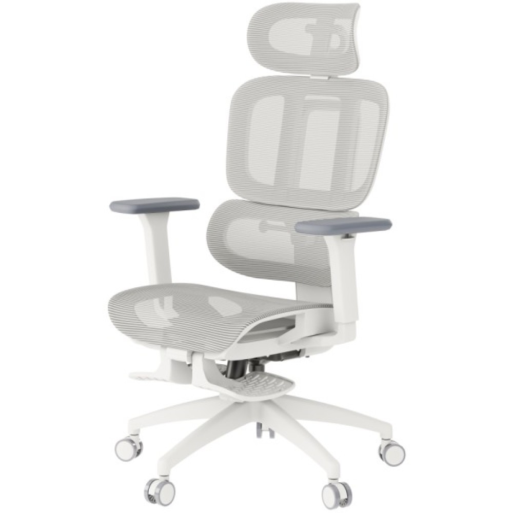 Регульована поперекова підтримка забезпечує ергономічно правильне положення спини, щоб запобігти перенапрузі при тривалому сидінні. Кут нахилу та висота підголівника регулюється для оптимального позиціювання. А завдяки регулюванню спинки за висотою ви можете налаштувати зручне положення спинки для свого зросту. Нейлонові 3D підлокітники, покриті м’яким поліуретаном, регулюються за висотою, вперед-назад і змінюють кут повороту по горизонталі (назовні або всередину). Для регулювання нахилу та фіксації спинки, у кріслі використовується синхромеханізм, що у поєднанні з функцією регулювання глибини сидіння надає ще більше комфорту. Як приємний бонус до всіх вище перерахованих можливостей, крісло обладнане складною підставкою для ніг. Вона допоможе зняти напругу та покращити кровообіг під час перерв, а також дозволяє зайняти повністю горизонтальне положення, використовуючи нахил спинки.
