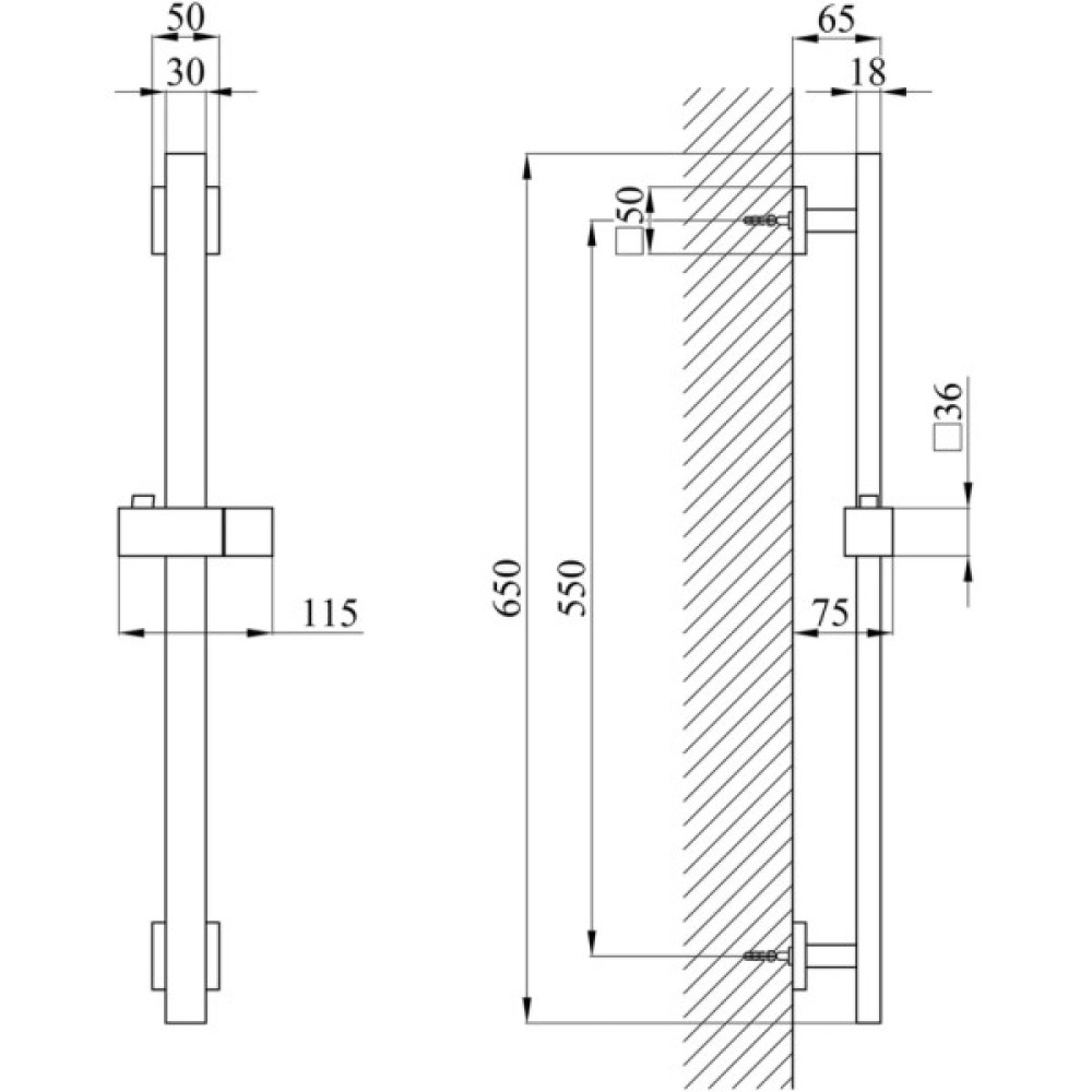 - Душова штанга ESG230 з тримачем для ручного душу (лійка та шланг у комплекті).