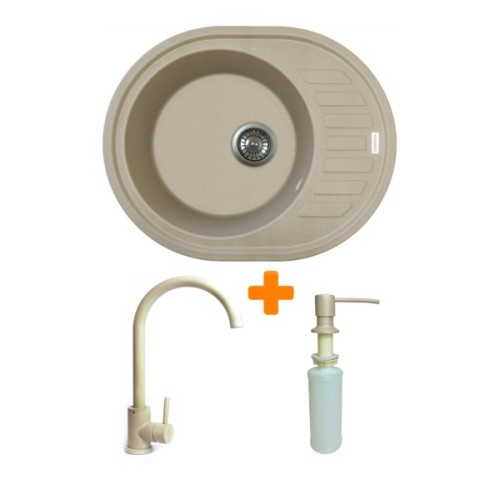 Набір Adamant Ovum складається з овальної врізної мийки зі штучного каменю з крилом, змішувача та дозатора, утворюючи практичне комплексне рішення для кухні. Мийка виконана за технологією Solid Surface, що забезпечує високу стійкість до температур і щоденних навантажень. Глибока чаша зручна для роботи з великим посудом та продуктами. Змішувач і дозатор виготовлені з надійних матеріалів та доповнюють загальну функціональність. Це сучасний набір для тих, хто цінує комфорт і довговічність.