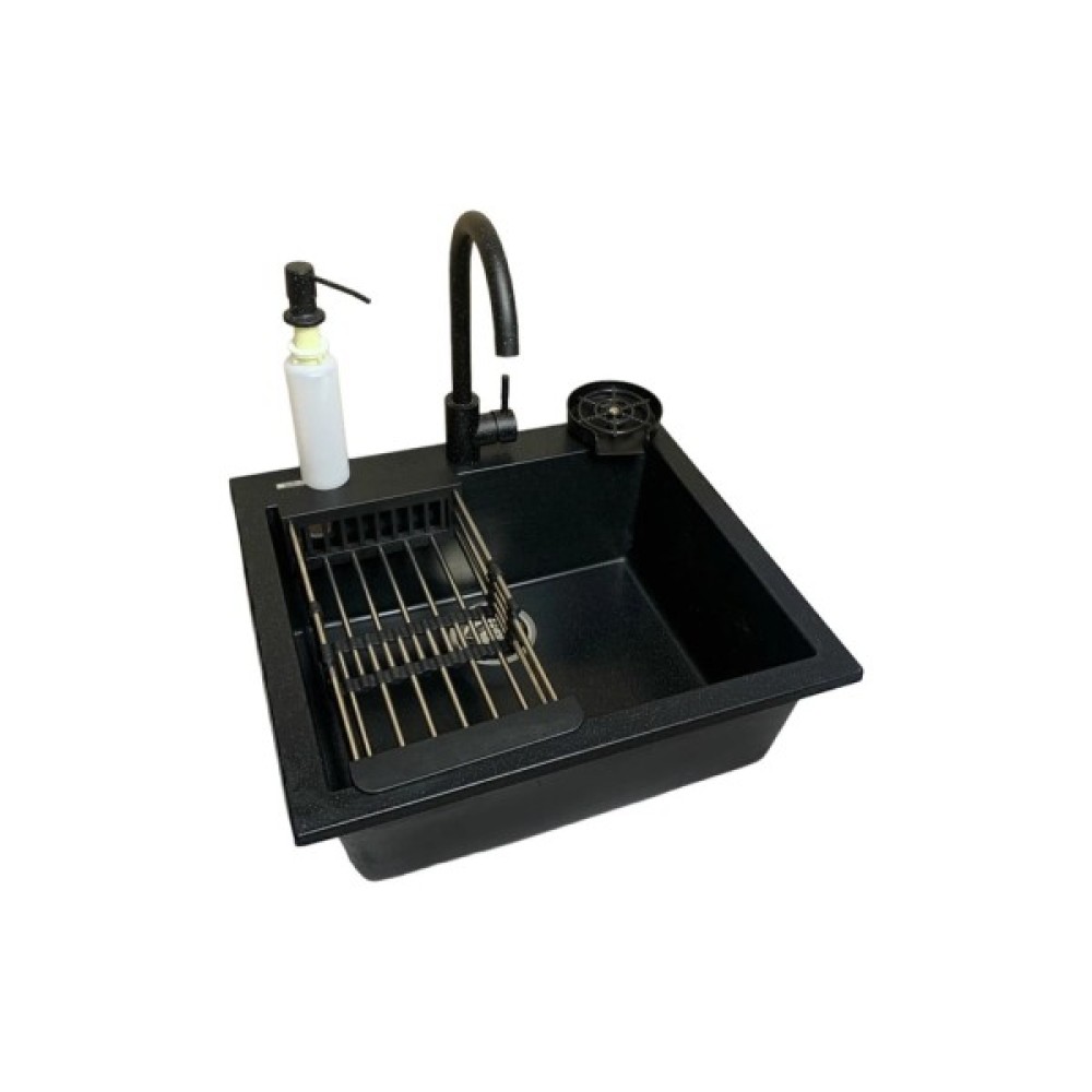 Univer чорний + змішувач + дозатор + ополіскувач с