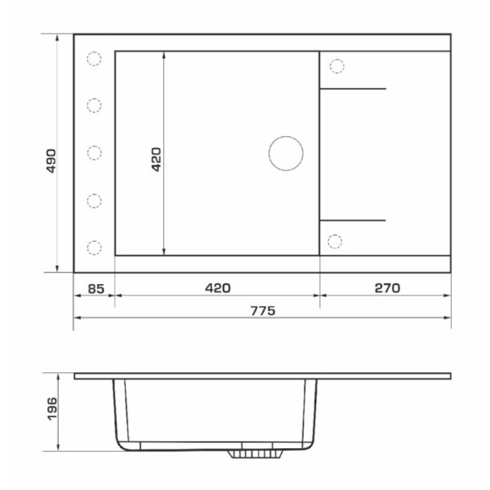 Представлена тут врізна прямокутна кухонна мийка 3103 серії Almeria вирізняється строгими лініями, має матову поверхню і чудово пасуватиме до кухні із сучасним дизайном. Модель обладнується однією чашею, переливним отвором і має габаритні розміри 77.5 х 49 х 19.6 см.