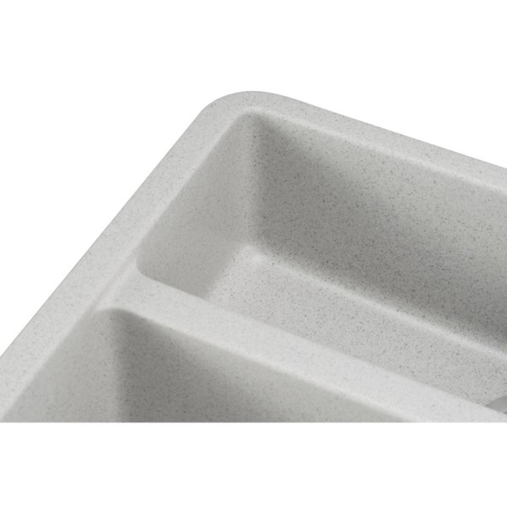 GRANADO Under top double – коли мрія про ідеальну кухню стає реальністю. Кварцова мийка, яка кріпиться під стільницю, і має дві чаші для максимальної зручності. Якщо чистота для вас особливо важлива – цій моделі просто немає рівних. Завдяки монтажу під стільницею відсутні стики, де міг би накопичуватися бруд. Матеріал, виготовлений за унікальною технологією Nanogranite, зберігає гігієнічну чистоту, має антибактеріальні присадки у складі та щільну непористу поверхню. Користуючись двома чашами одночасно, легко відокремити вже вимиті продукти від решти, або ж мити й одразу ополіскувати посуд.