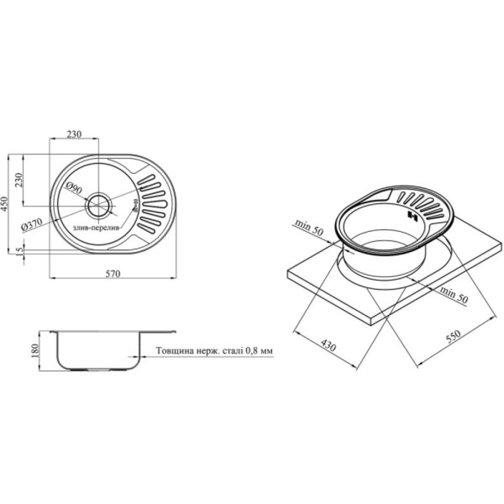 Комплектація сифон; кріплення; перелив; кухонна мийка