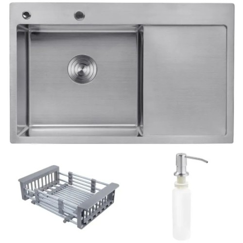 Кухонна мийка Kroner KRP Gebürstet - 7849LHM - ідеальне рішення для сучасної кухні. Завдяки своїй прямокутній формі та стильному дизайну вона впишеться в будь-який інтер'єр. Інтегрований спосіб монтажу дозволяє безпроблемно встановити мийку. Виготовлена з високоякісної нержавіючої сталі, що забезпечує довгий термін служби та легке очищення. Функціональна, надійна та естетично приваблива - мийка від Kroner стане незамінним помічником у приготуваннях та прикрасою вашої кухні.