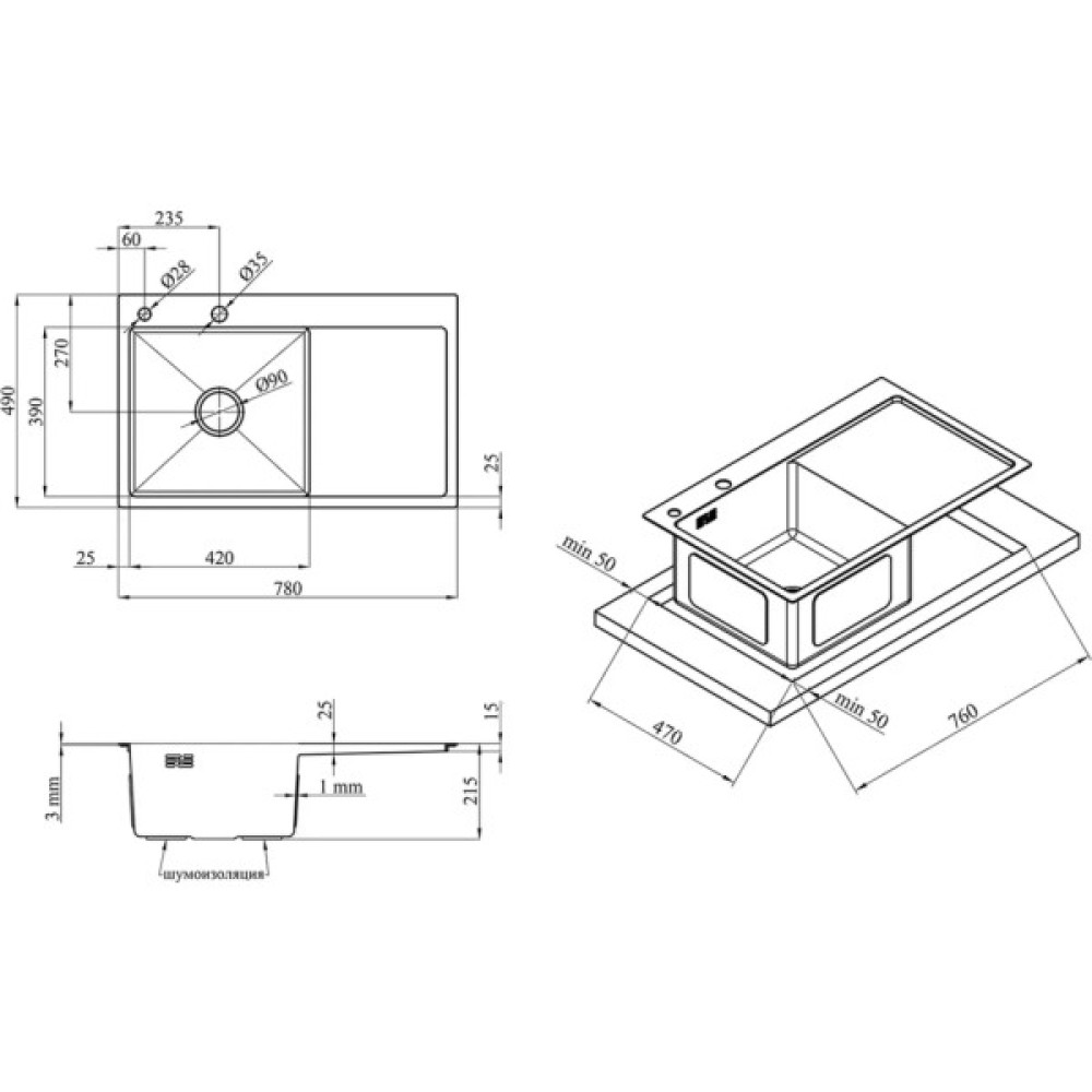 Мийка кухонна Kroner Geburstet-7849LHM (CV025275)