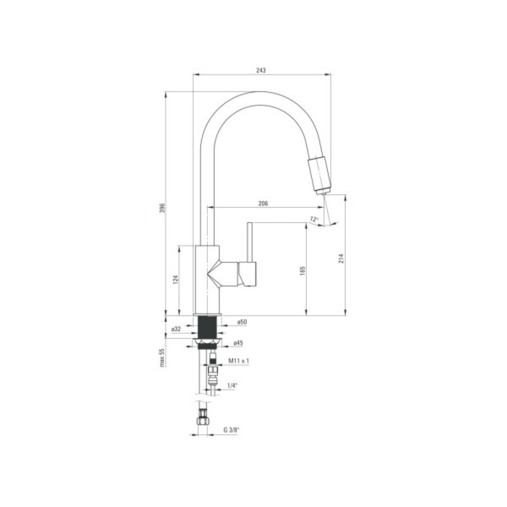 Висота змішувача 396 мм