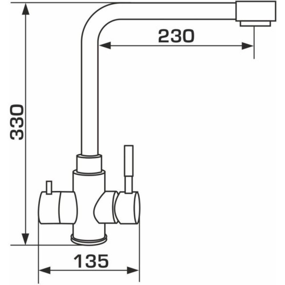 Змішувач має додатковий вентиль для подавання відфільтрованої води.