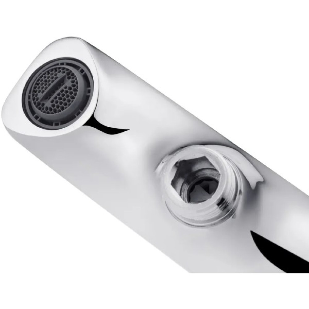 Розміри змішувача становлять 125 мм у висоту, 210 мм у ширину та 190 мм у глибину, що робить його оптимальним для різних типів ванн. Литий вилив довжиною 130 мм. Змішувач оснащений керамічним картриджем діаметром 35 мм, що забезпечує плавне й точне регулювання температури та напору води.