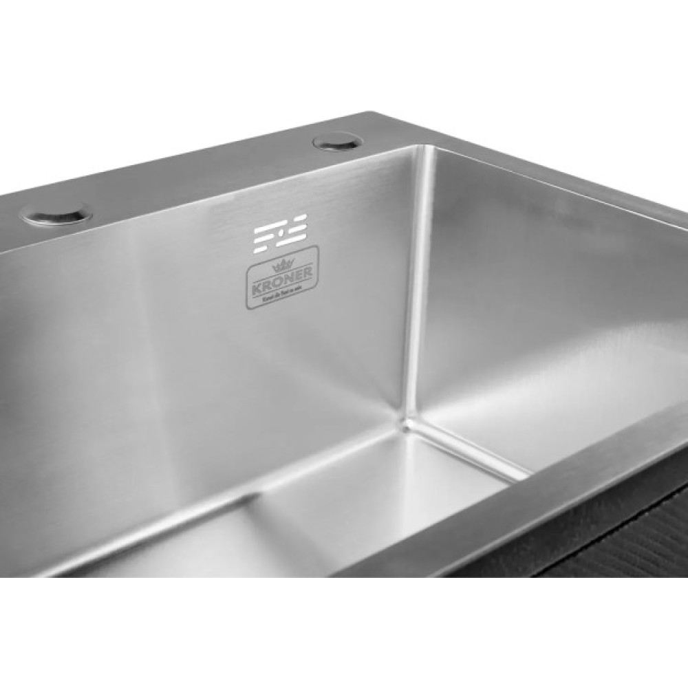 Кухонна мийка Kroner KRP Gebürstet - ідеальний вибір для вашої кухні! Ця прямокутна мийка з інтегрованим монтажем легко впишеться в будь-який інтер'єр. Виготовлена з високоякісної нержавіючої сталі, забезпечуючи довгий термін служби. Практичний додаток - вбудований отвір для дозатора миючого засобу. З мийкою від Kroner ви отримуєте не тільки функціональний товар, але й стильний аксесуар, який зробить вашу кухню ще зручнішою і привабливішою.