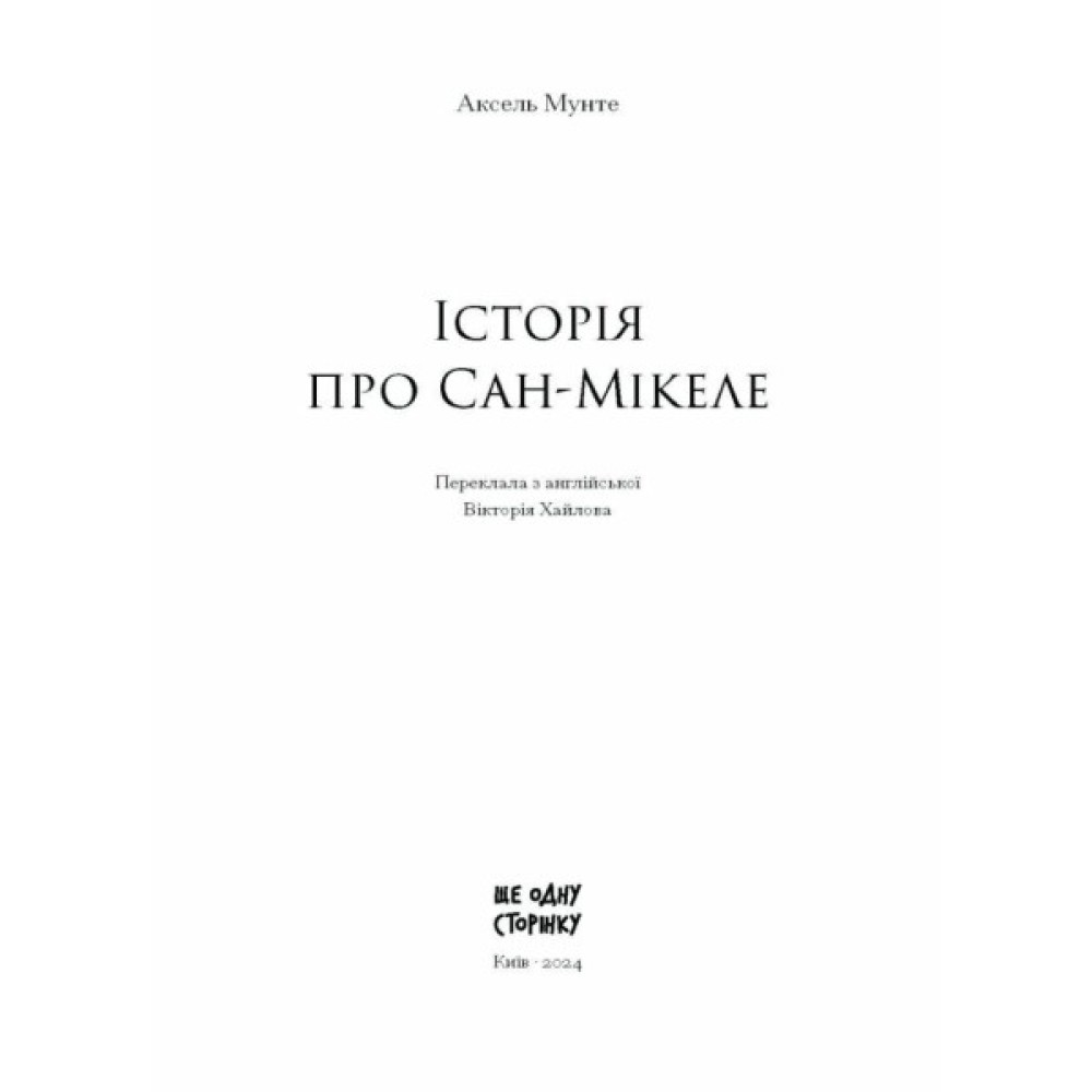 «Історія про Сан-Мікеле» шведського лікаря Акселя Мунте поєднує в собі мемуари, автобіографію, роман-подорож та філософські роздуми, пропонуючи читачеві дослідити унікальний внутрішній світ головного героя та красу природи навколо. Низка подій і життєвих виборів проводить нас через Париж, Лапландію, Неаполь, Рим, але вілла Сан-Мікеле слугує основним місцем твору, куди Мунте постійно повертається, фізично чи подумки.