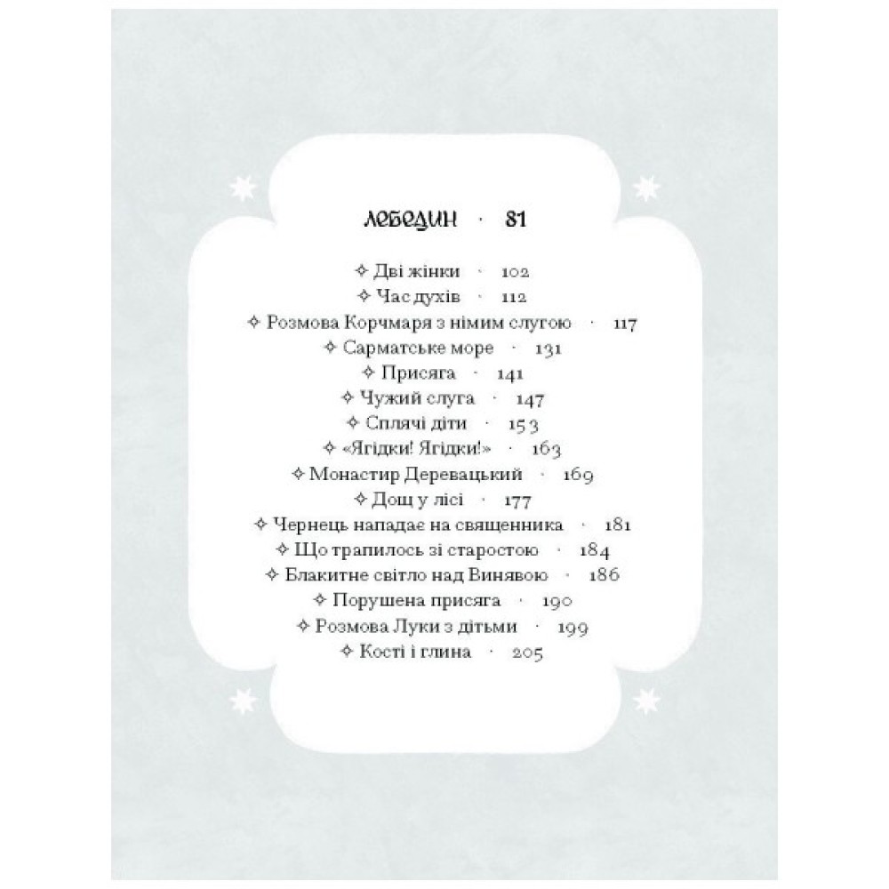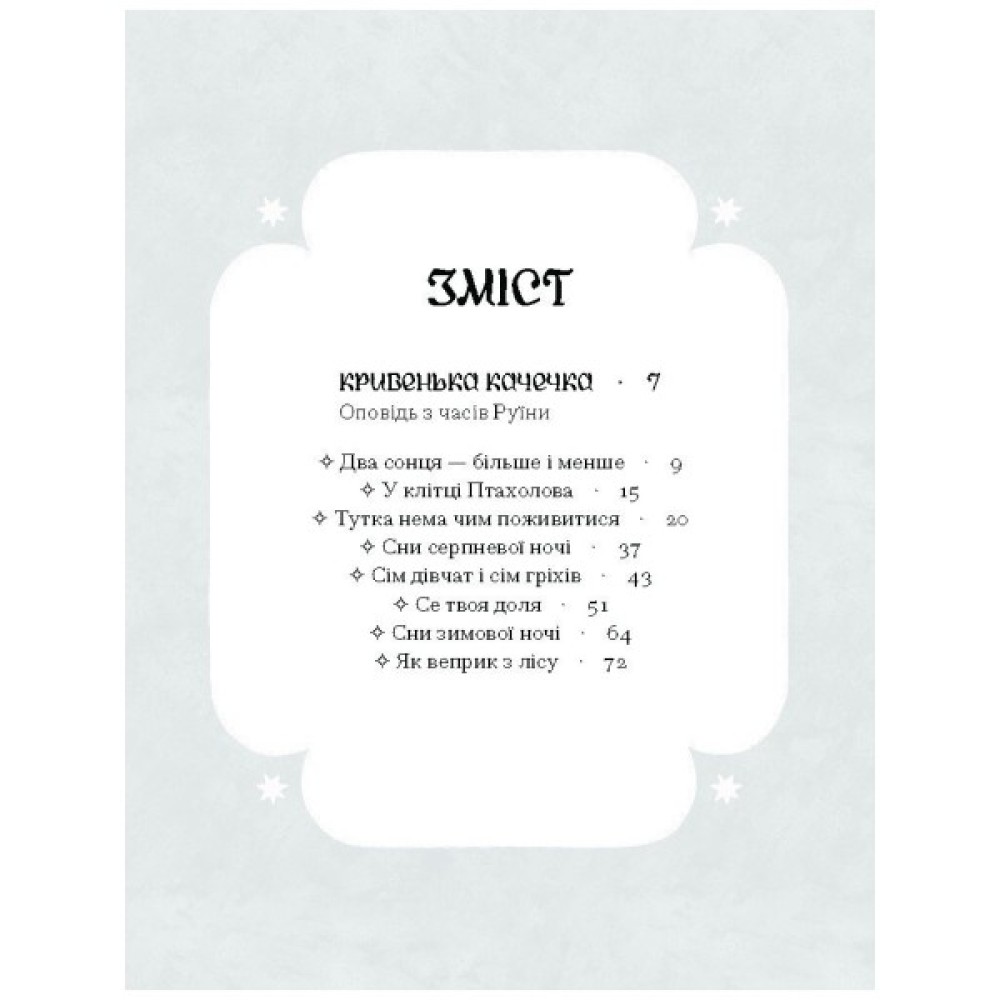 До книжки увійшли повісті «Кривенька качечка» та «Лебедин». Кожна відгукнеться і залишиться невагомою м’якою пір’їною в серці.