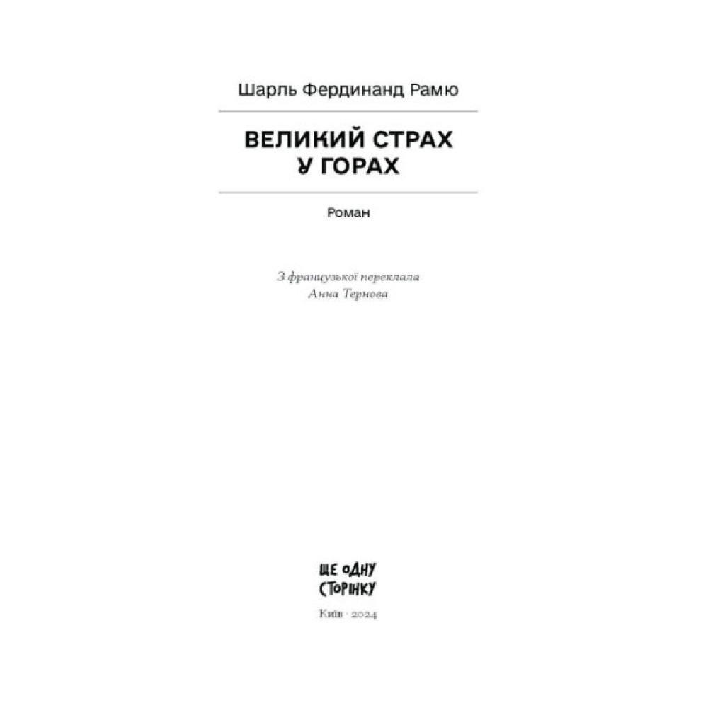 У романі «Великий страх у горах» швейцарський письменник Шарль Фердинанд Рамю досліджує природу страху, як він зароджується, що його живить, як він захоплює окрему людину, а далі поширюється на спільноту. Як він полонить дедалі більшу кількість людей, опановує їхні почуття і керує їхніми вчинками. Завдяки особливій оповідній техніці, що нагадує кіномову, автору вдалося створити напружену дію, а похмурі й водночас привабливі гірські краєвиди лише підсилюють тривожне передчуття прийдешньої катастрофи.