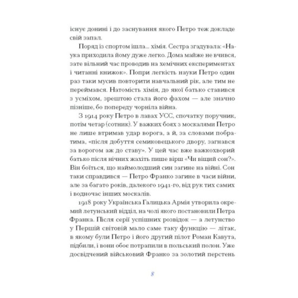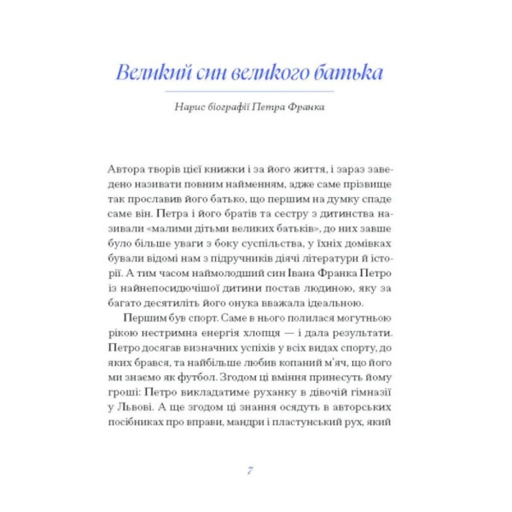 Важко сказати, що Петро Франко був у тіні історії. Ще за життя непосидючий син Каменяра мав визнання, адже доклався до безлічі справ — від керування першим летунським відділом Української Галицької Армії та поширення «Пласту» в Україні до xімічниx досліджень, видавничої діяльності і створення першого батькового музею. Але Петро також писав. Як і в житті, у текстаx бачимо пошуки власного шляxу через експерименти з жанрами й темами.